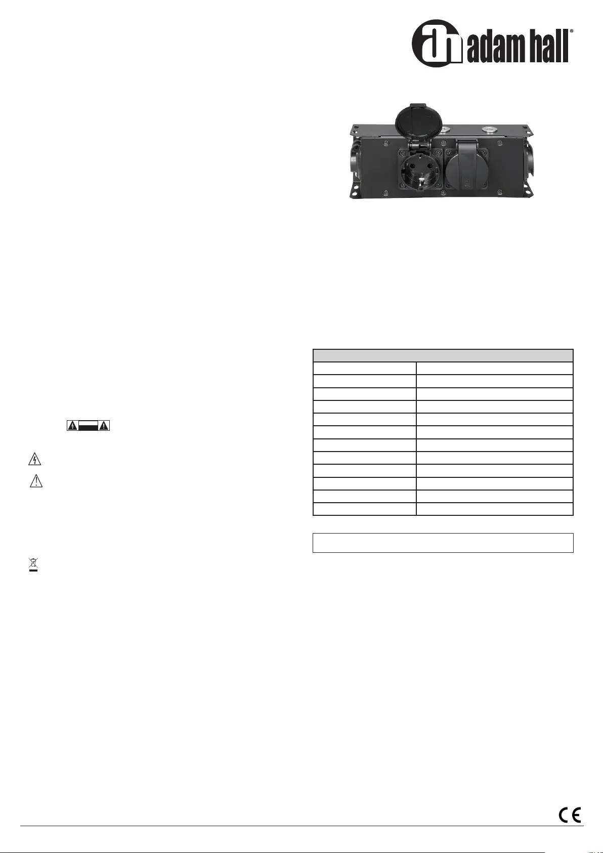 thread M10 suspension points it is ideal for neat, custom power distribution on stages, trusses and in gear rigs.