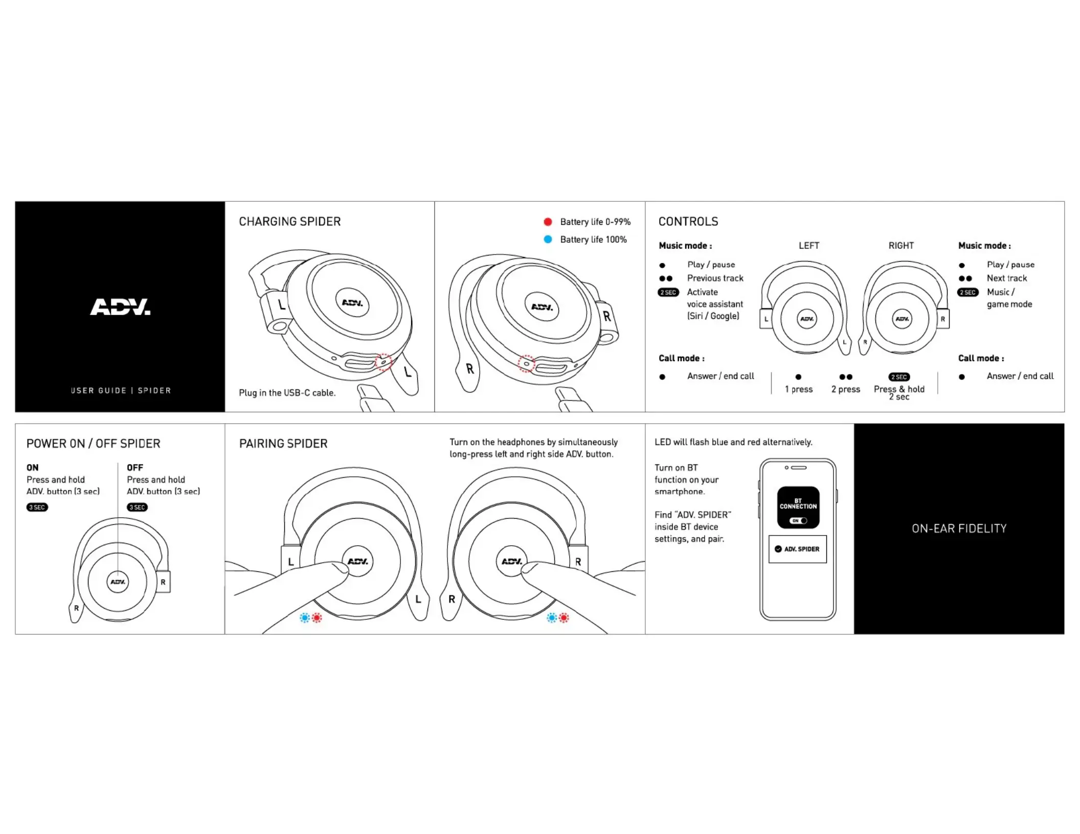 Læs gratis den danske manual til ADV. Spider (1 sider) i kategorien Hovedtelefon. Denne vejledning er vurderet som hjælpsom af 8 personer og har en gennemsnitlig bedømmelse på 3.9 stjerner ud af 4.5 anmeldelser.