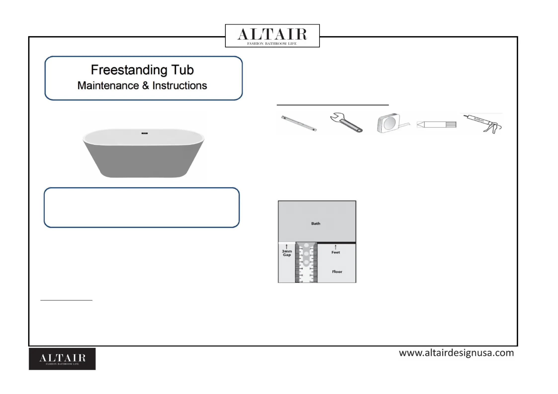 Badekar Altair Manualer