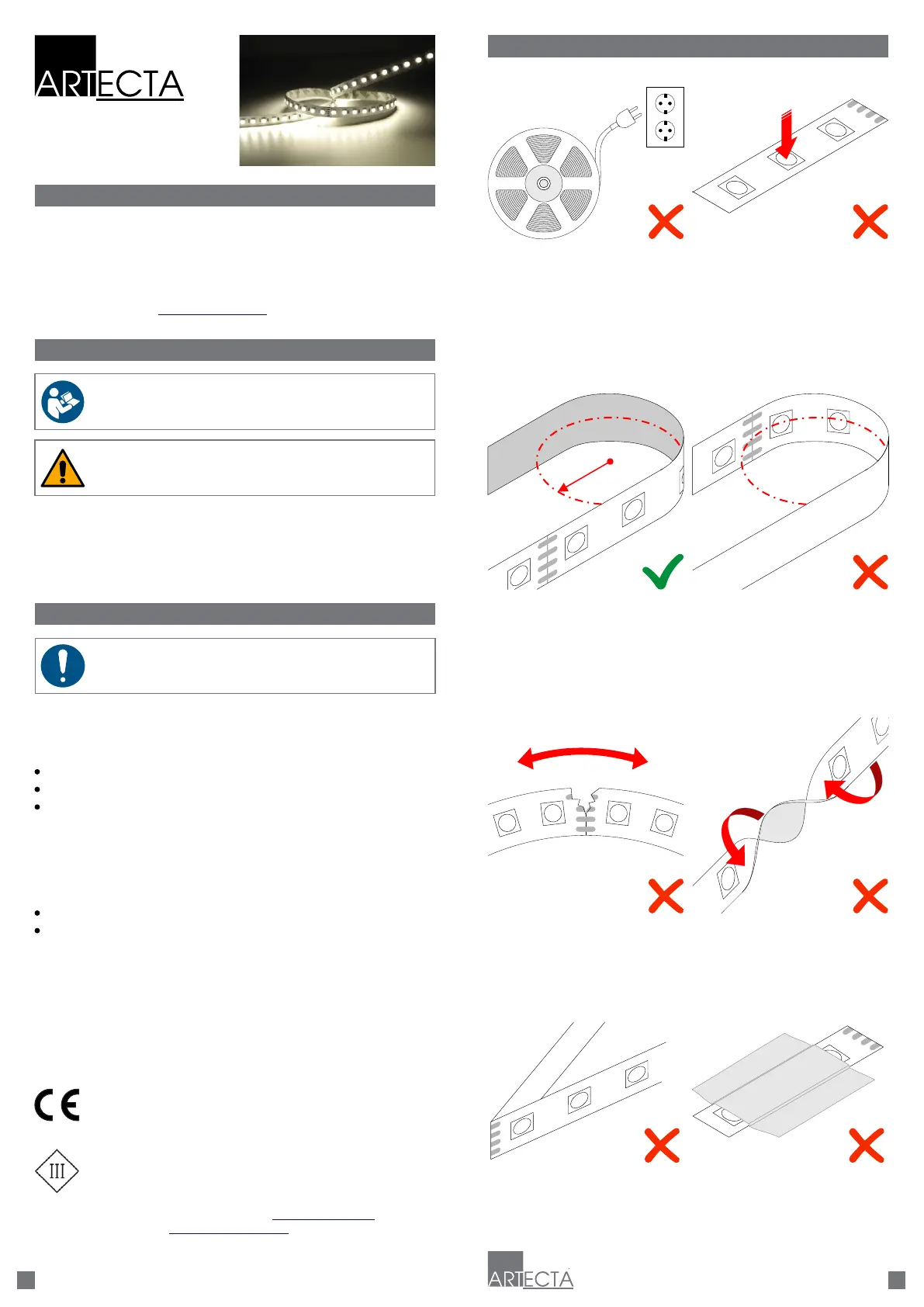 Do not connect the LED strip to electrical power supply when the