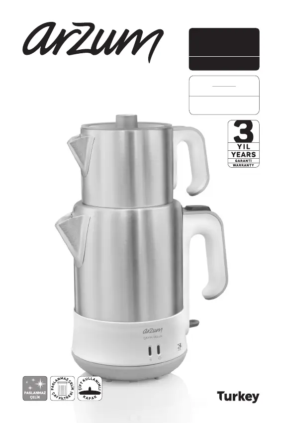 Læs gratis den danske manual til Arzum AR3050 (20 sider) i kategorien Theemaker. Denne vejledning er vurderet som hjælpsom af 22 personer og har en gennemsnitlig bedømmelse på 4.7 stjerner ud af 11.5 anmeldelser.