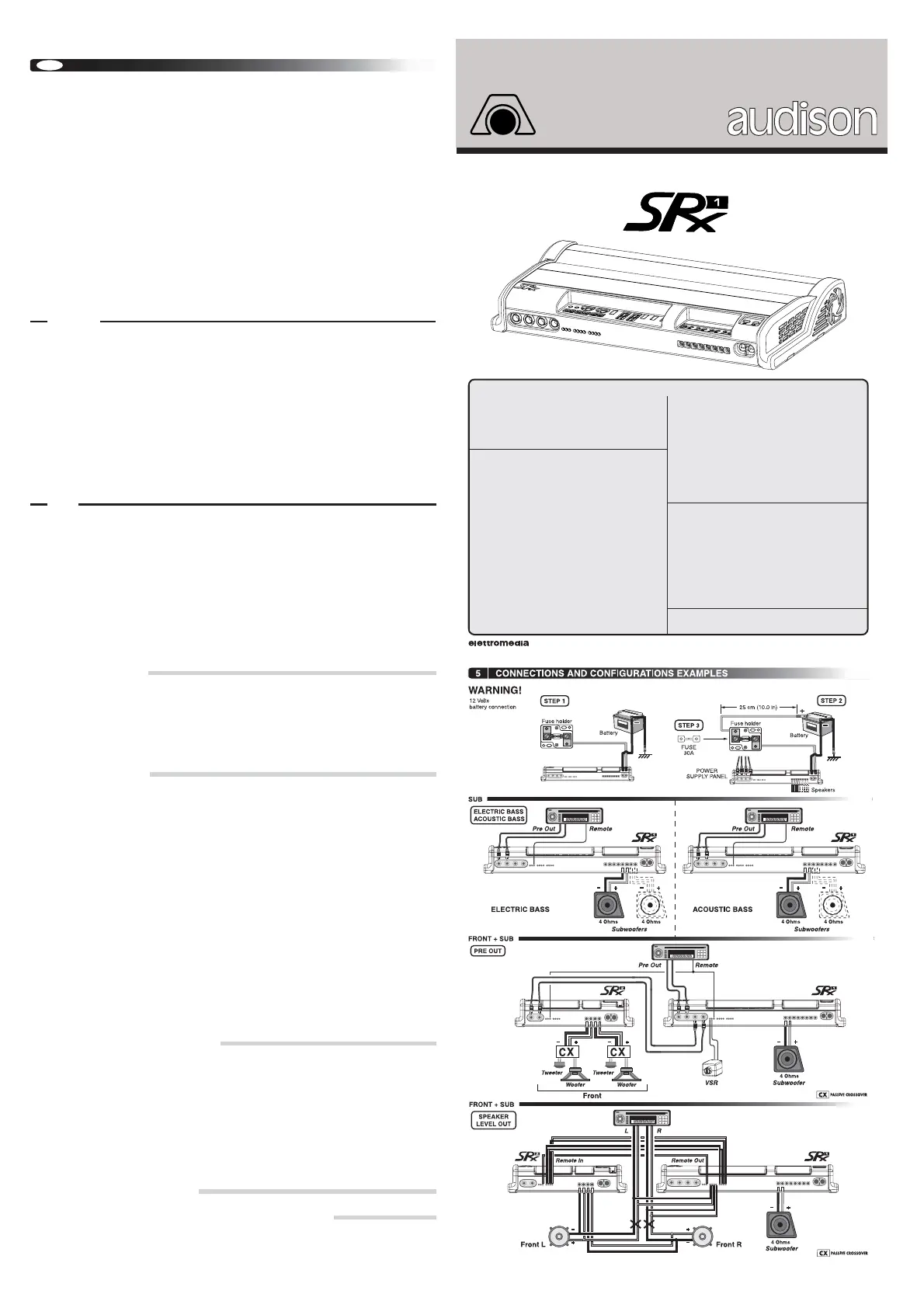 1 • Power supply cables (4/5m long): with 4 Ohm loads, use