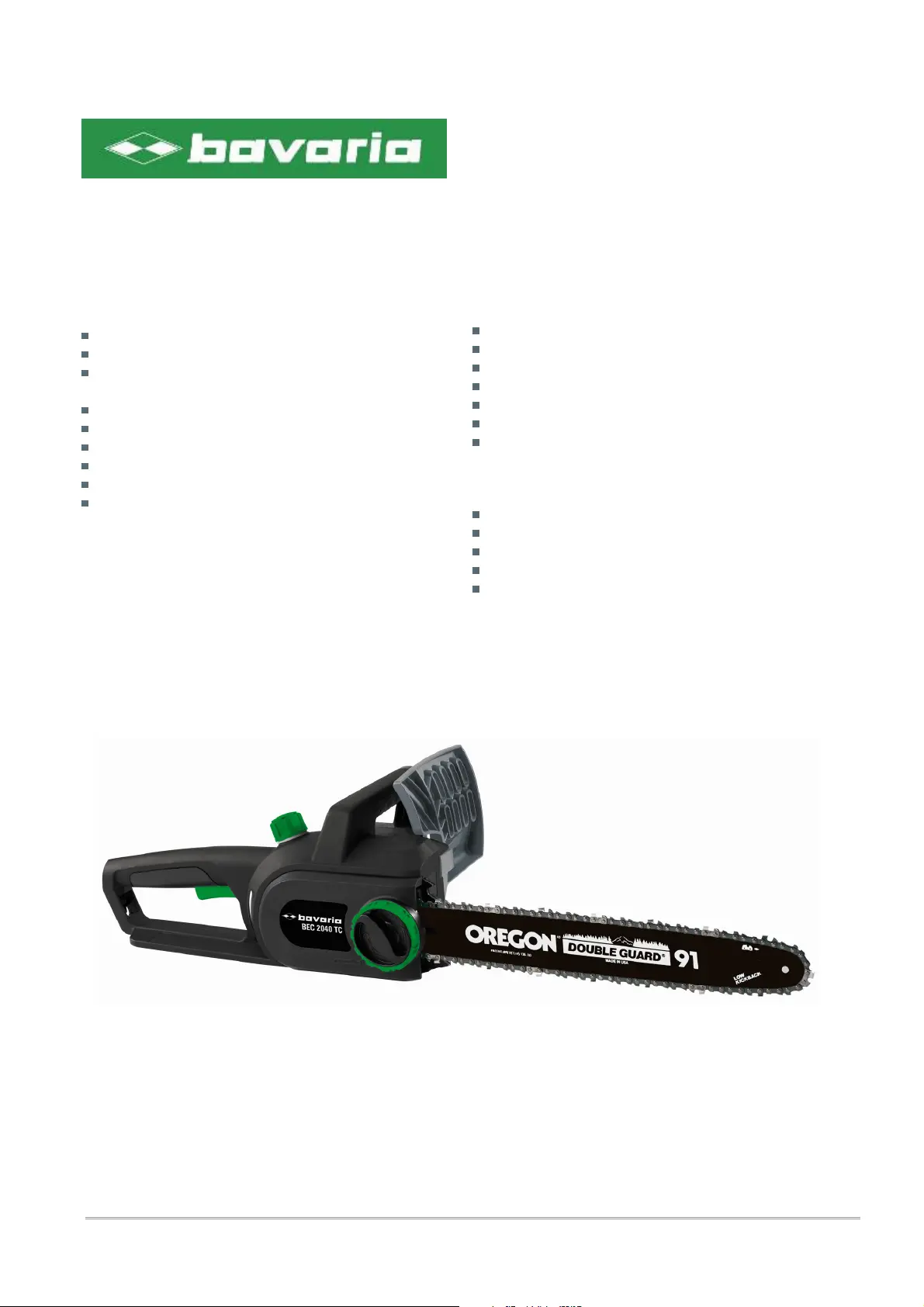 Læs gratis den danske manual til Bavaria BEC 2040 TC (1 sider) i kategorien Savmaskine. Denne vejledning er vurderet som hjælpsom af 55 personer og har en gennemsnitlig bedømmelse på 4.6 stjerner ud af 28 anmeldelser.