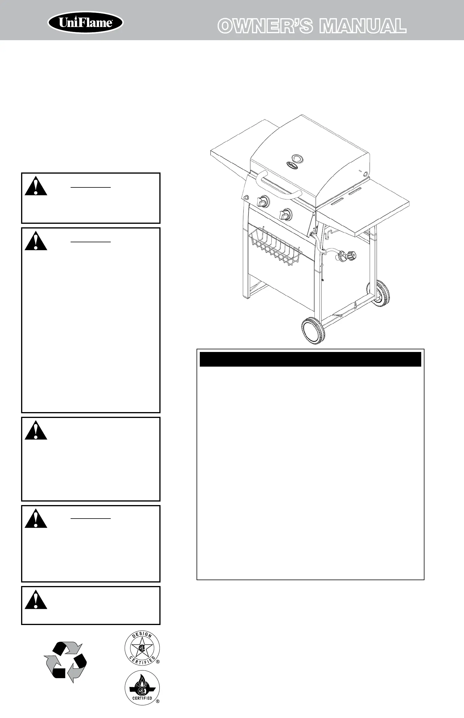 W This grill is safety certified for use in the United States and/or Canada