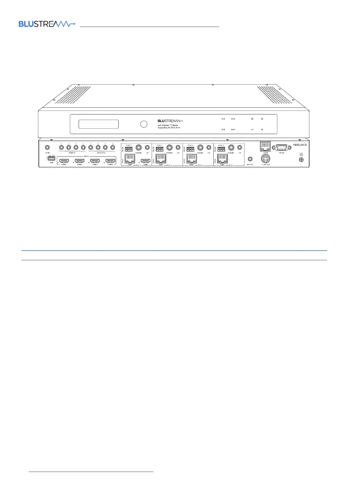 Our Essential 4x4 HDBaseT™ Matrix oers unprecedented performance and value for the
