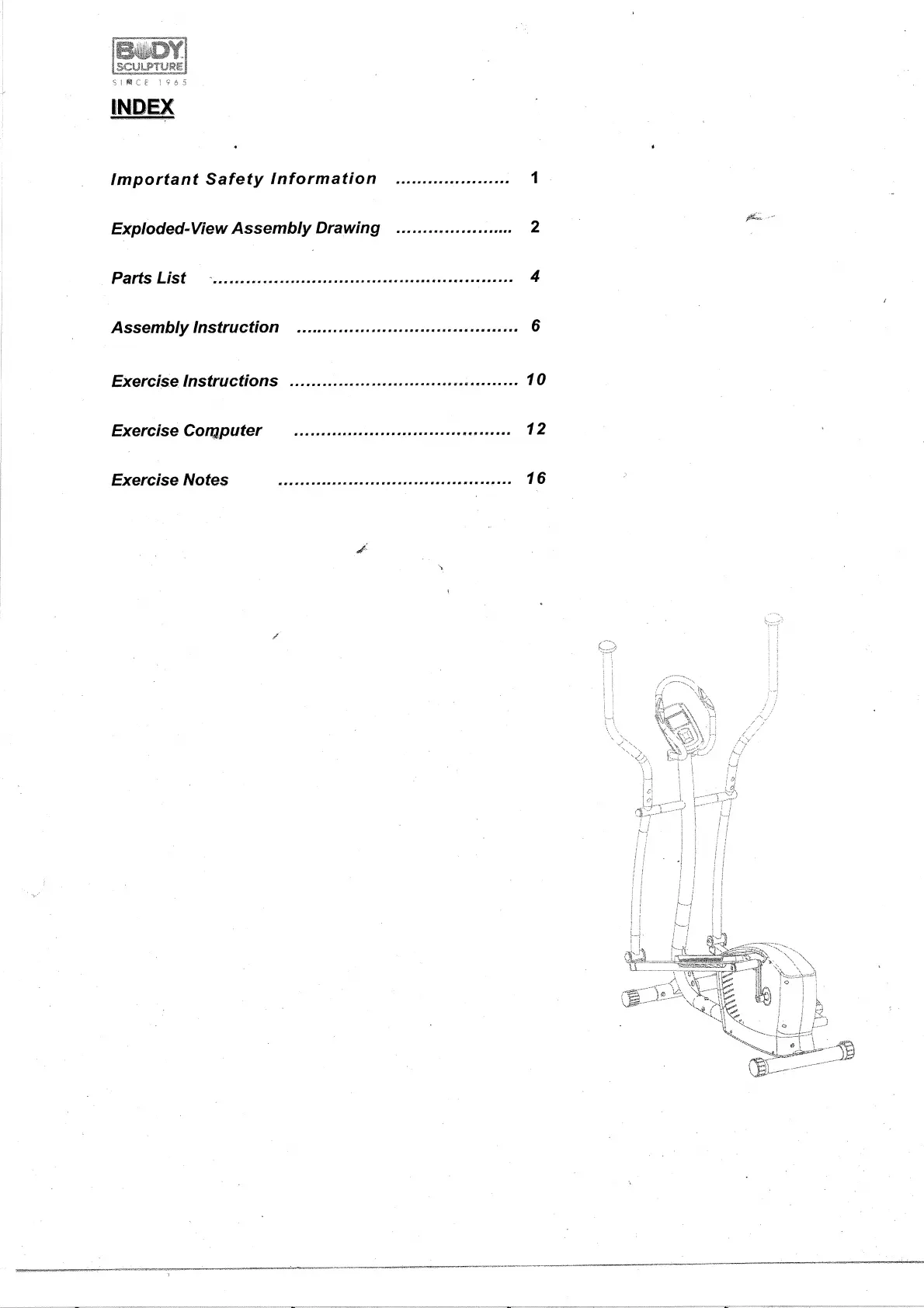 motionscykel Body Sculpture Manualer