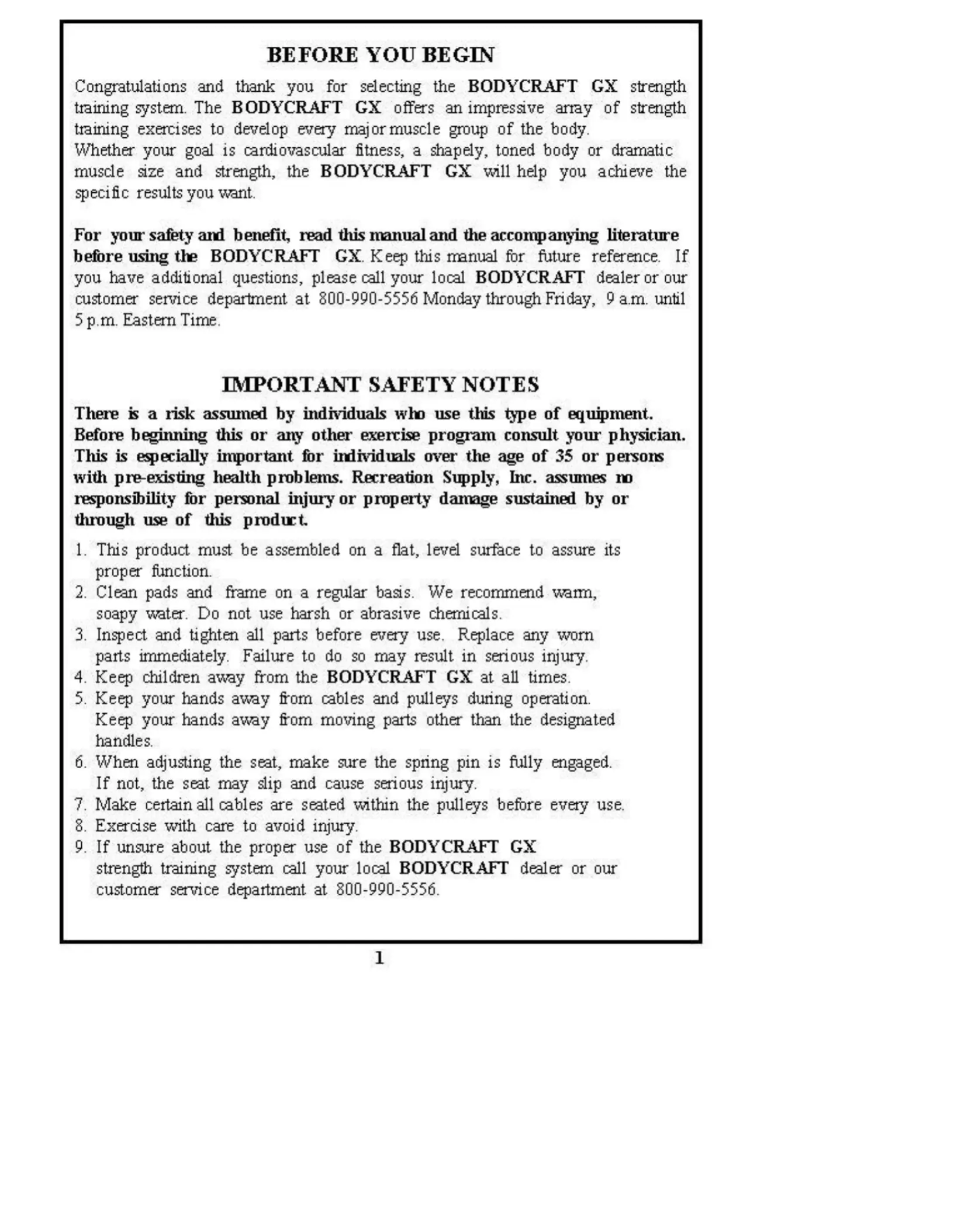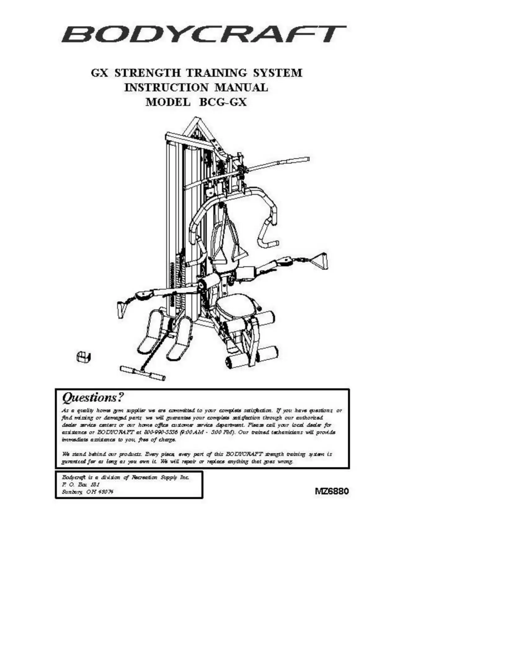 BodyCraft BCG--GX Manual