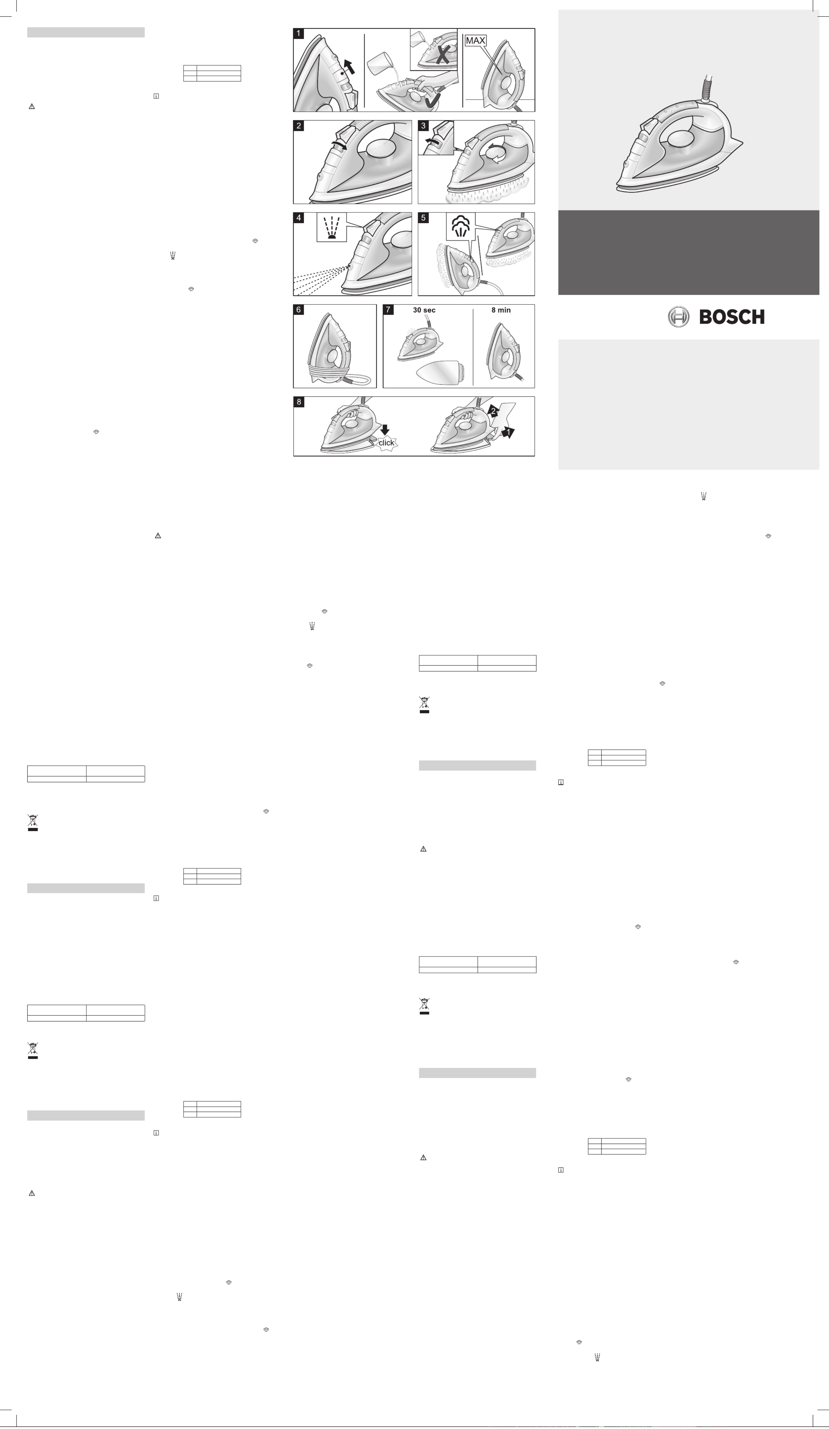 Tak for dit køb af dampstrygejernet TDA8 fra Bosch.