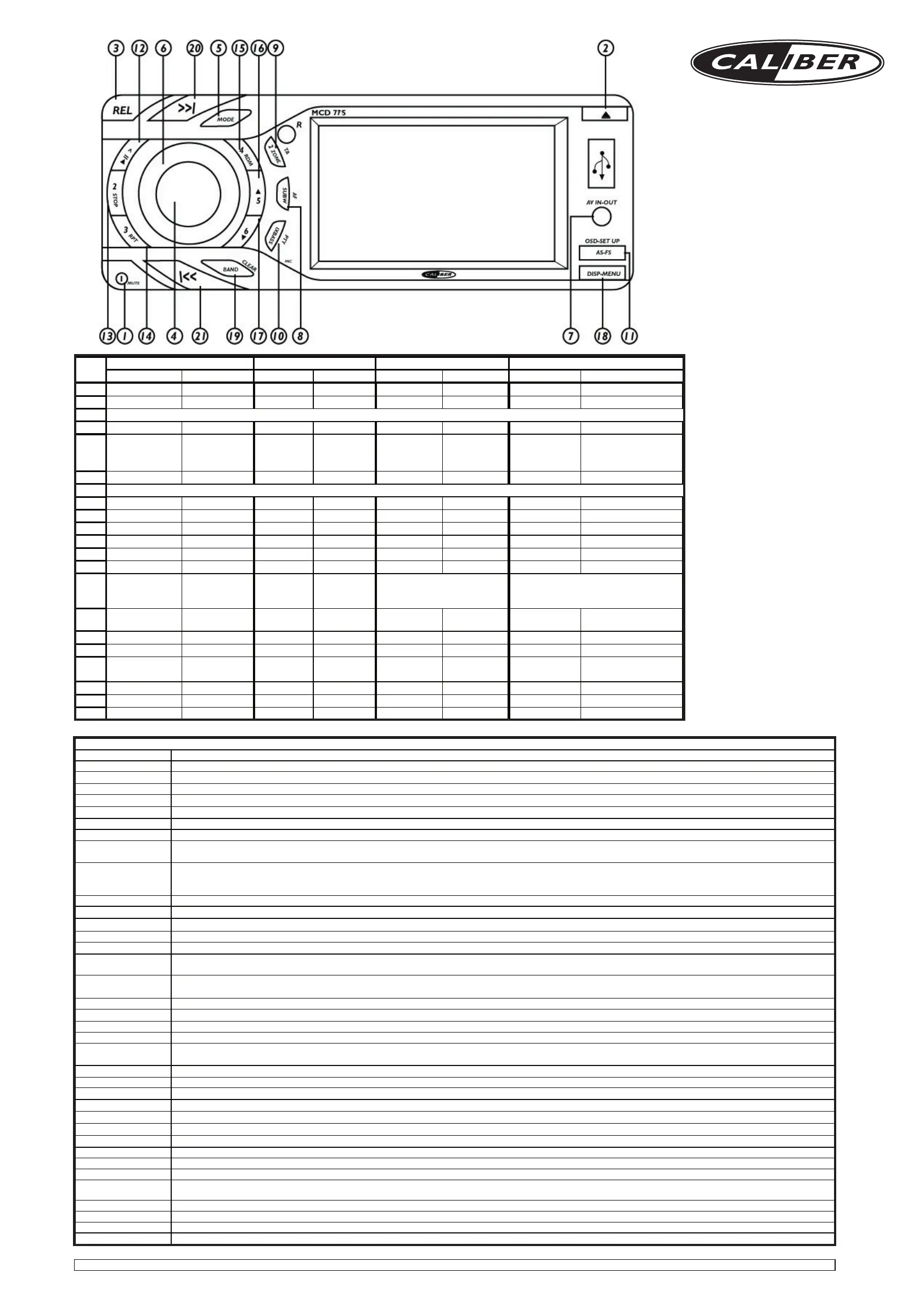 20 Seek up Tune up File/track up Fast forward Next Fast forward