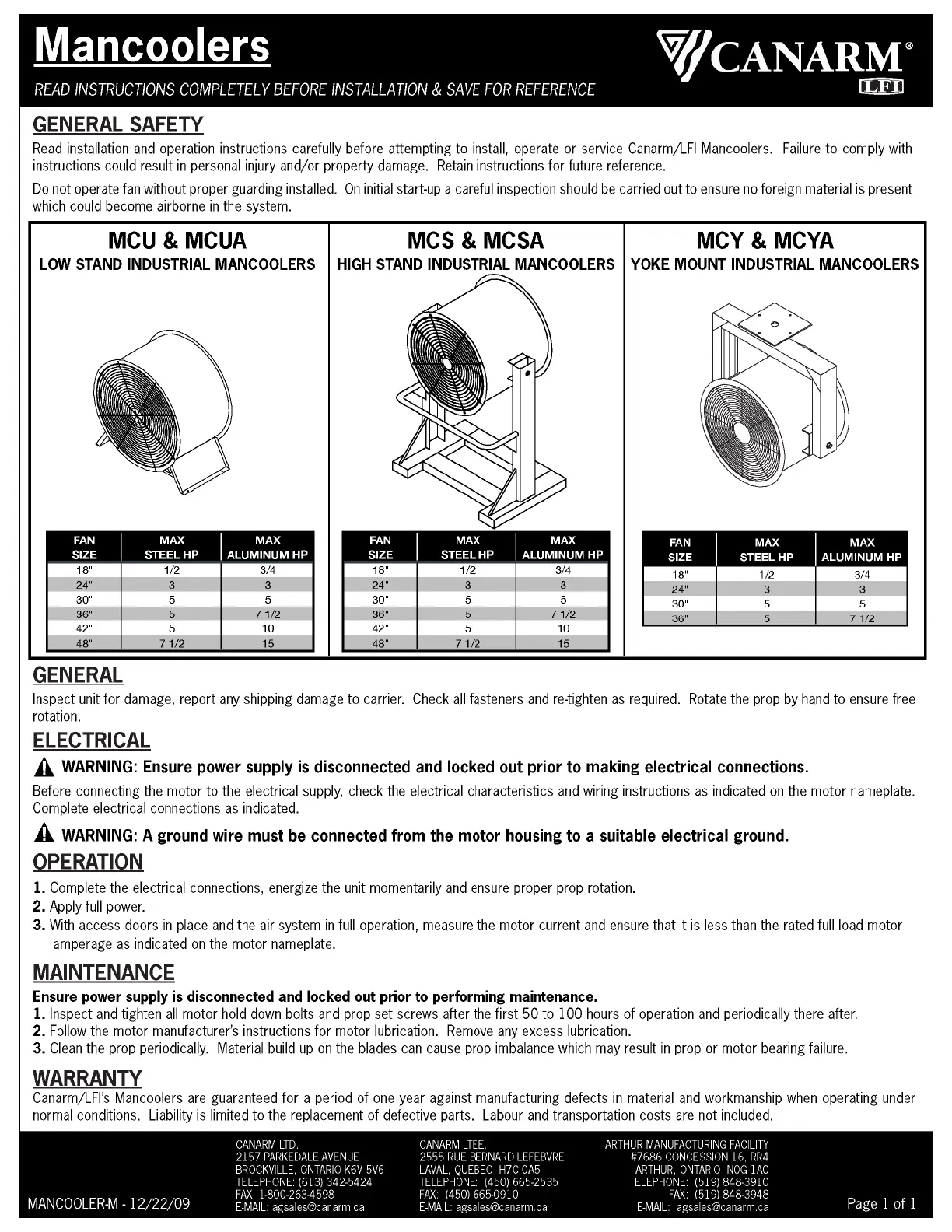 Canarm MCY24T10075C Manual