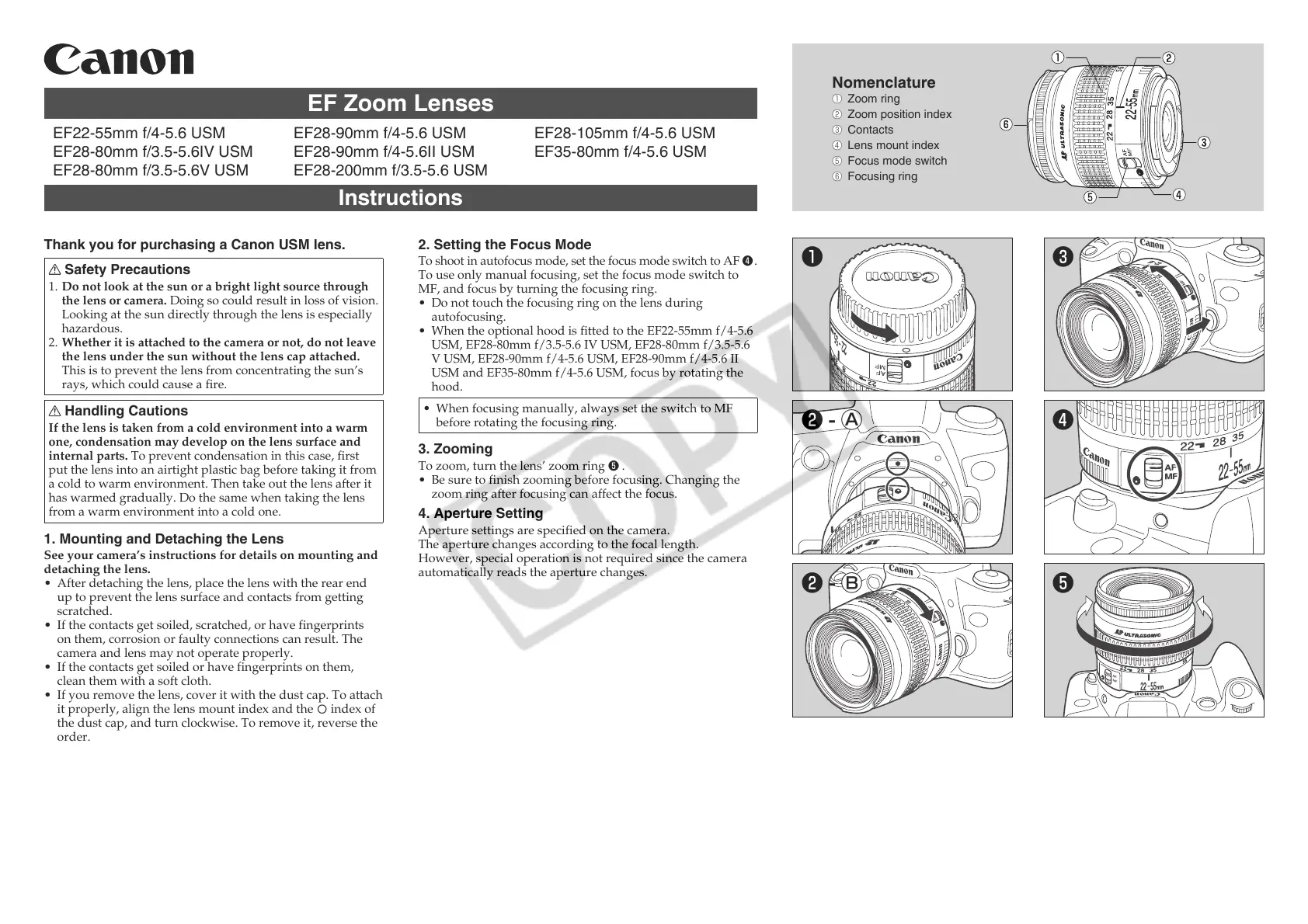 Thank you for purchasing a Canon USM lens.