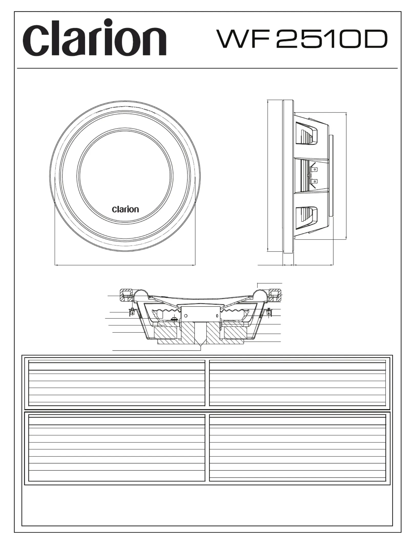 Læs gratis den danske manual til Clarion WF2510D (1 sider) i kategorien Højttaler. Denne vejledning er vurderet som hjælpsom af 52 personer og har en gennemsnitlig bedømmelse på 4.8 stjerner ud af 26.5 anmeldelser.