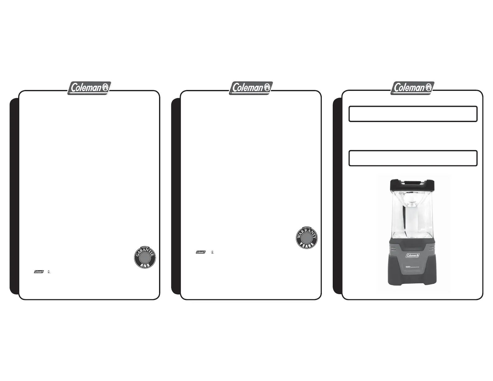 trois (3) ans courants à compter de la date de l’achat. Coleman se réserve le droit de choisir entre réparer ou remplacer cet article