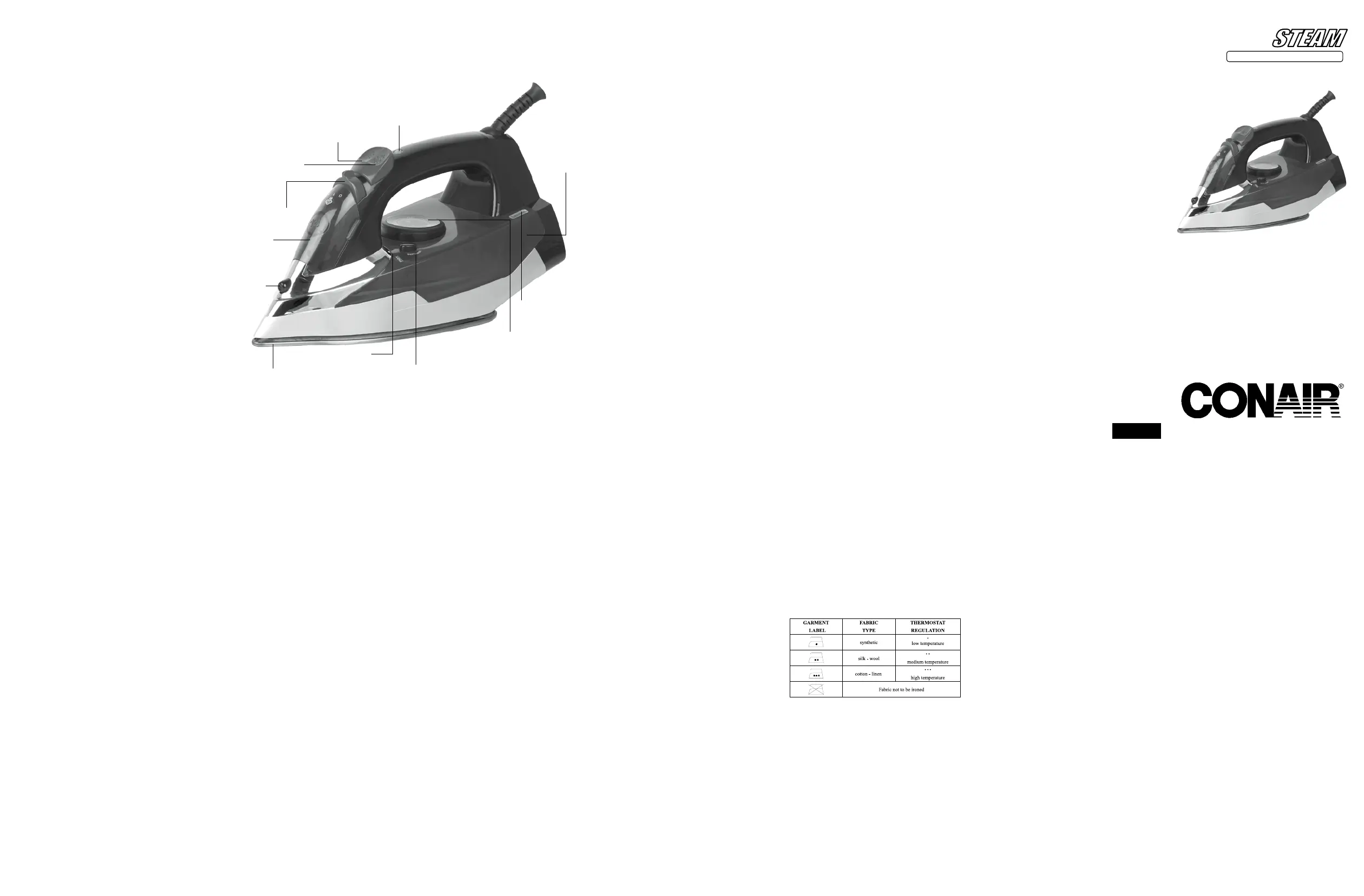 13. Do not place the soleplate directly on any