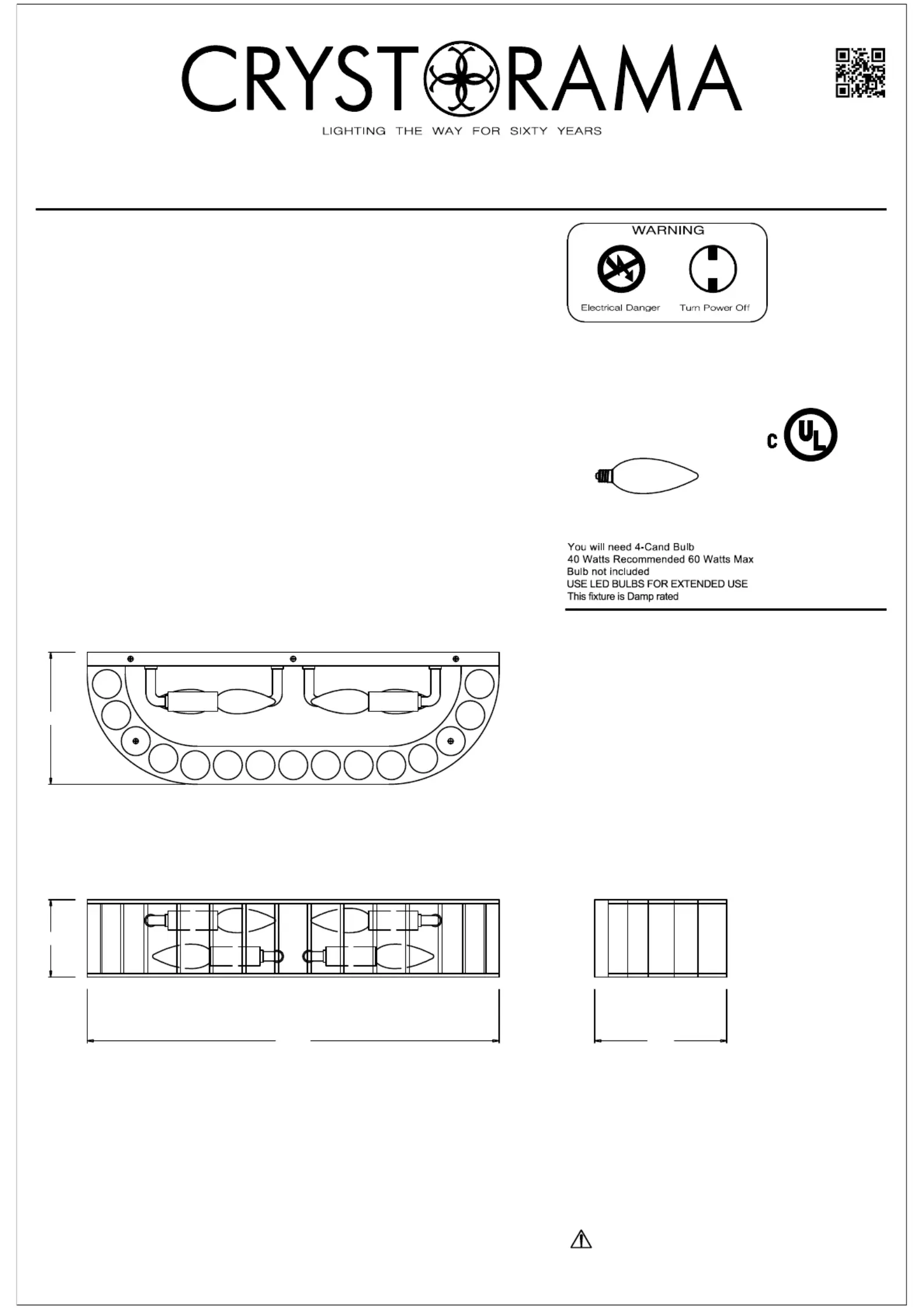 Læs gratis den danske manual til Crystorama Farris FAR-6005-AG (2 sider) i kategorien Lettelse. Denne vejledning er vurderet som hjælpsom af 29 personer og har en gennemsnitlig bedømmelse på 3.5 stjerner ud af 15 anmeldelser.