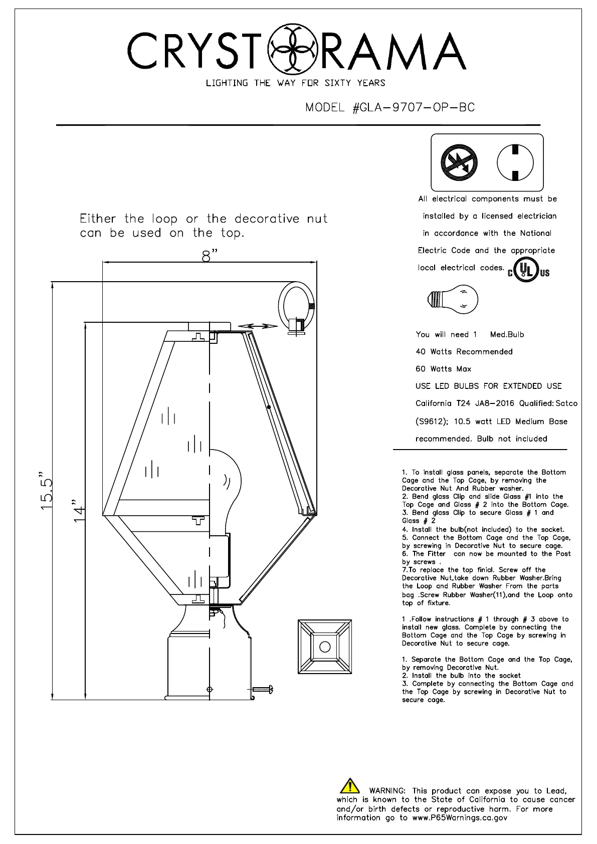 Crystorama Glacier GLA-9707-OP Manual