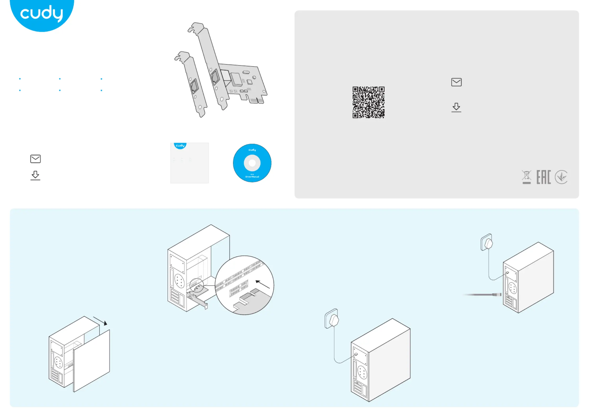 Læs gratis den danske manual til Cudy PE10 (2 sider) i kategorien Netværkskort/adapter. Denne vejledning er vurderet som hjælpsom af 30 personer og har en gennemsnitlig bedømmelse på 4.9 stjerner ud af 15.5 anmeldelser.