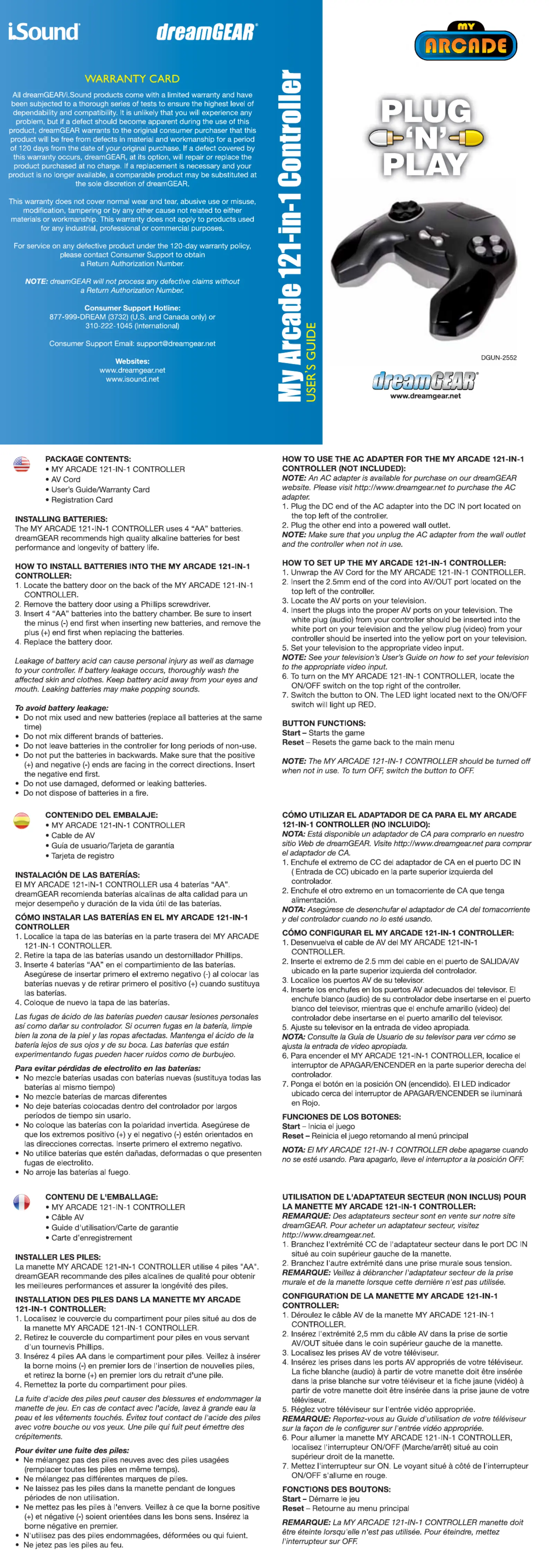 Læs gratis den danske manual til DreamGEAR DGUN-2552 (1 sider) i kategorien Konsol. Denne vejledning er vurderet som hjælpsom af 37 personer og har en gennemsnitlig bedømmelse på 4.5 stjerner ud af 19 anmeldelser.