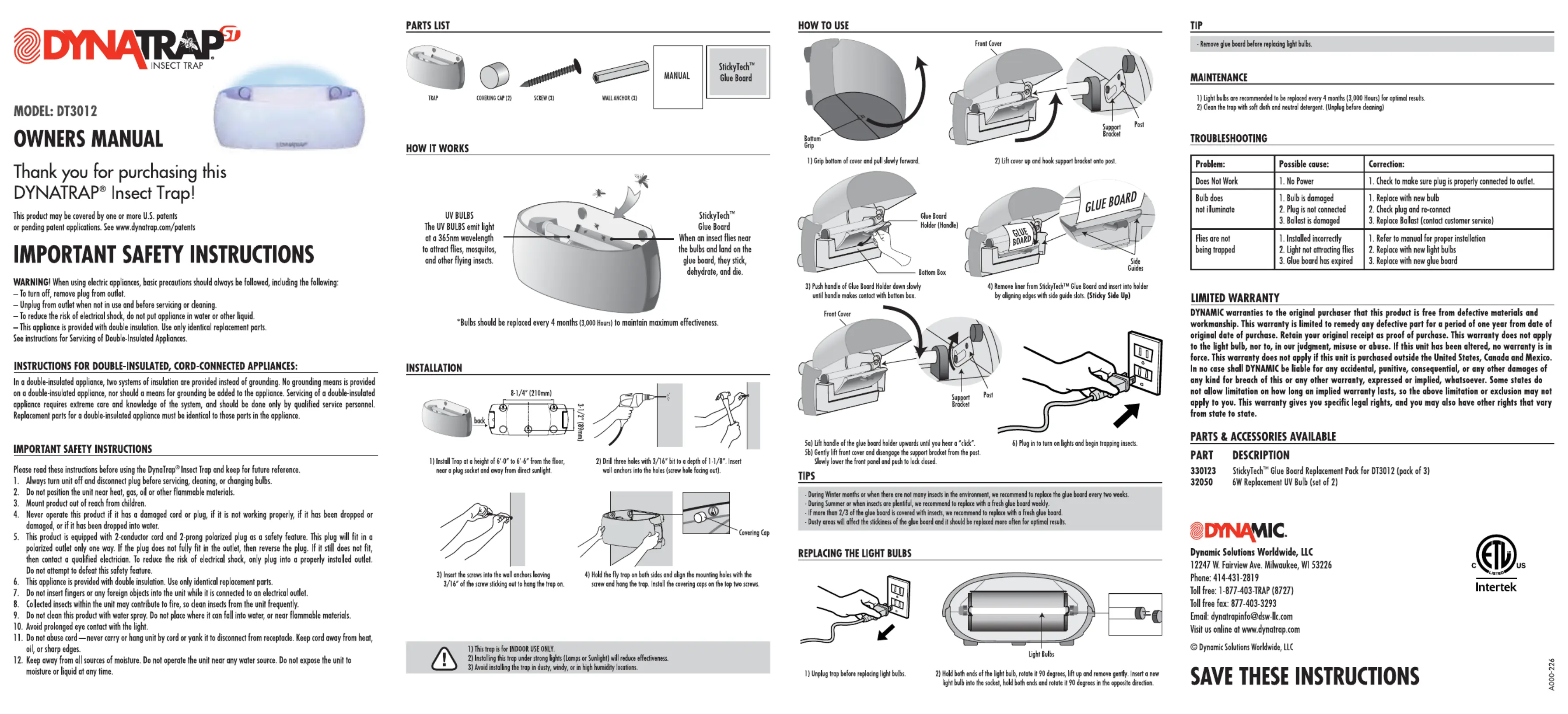Dynatrap DT3012 Manual