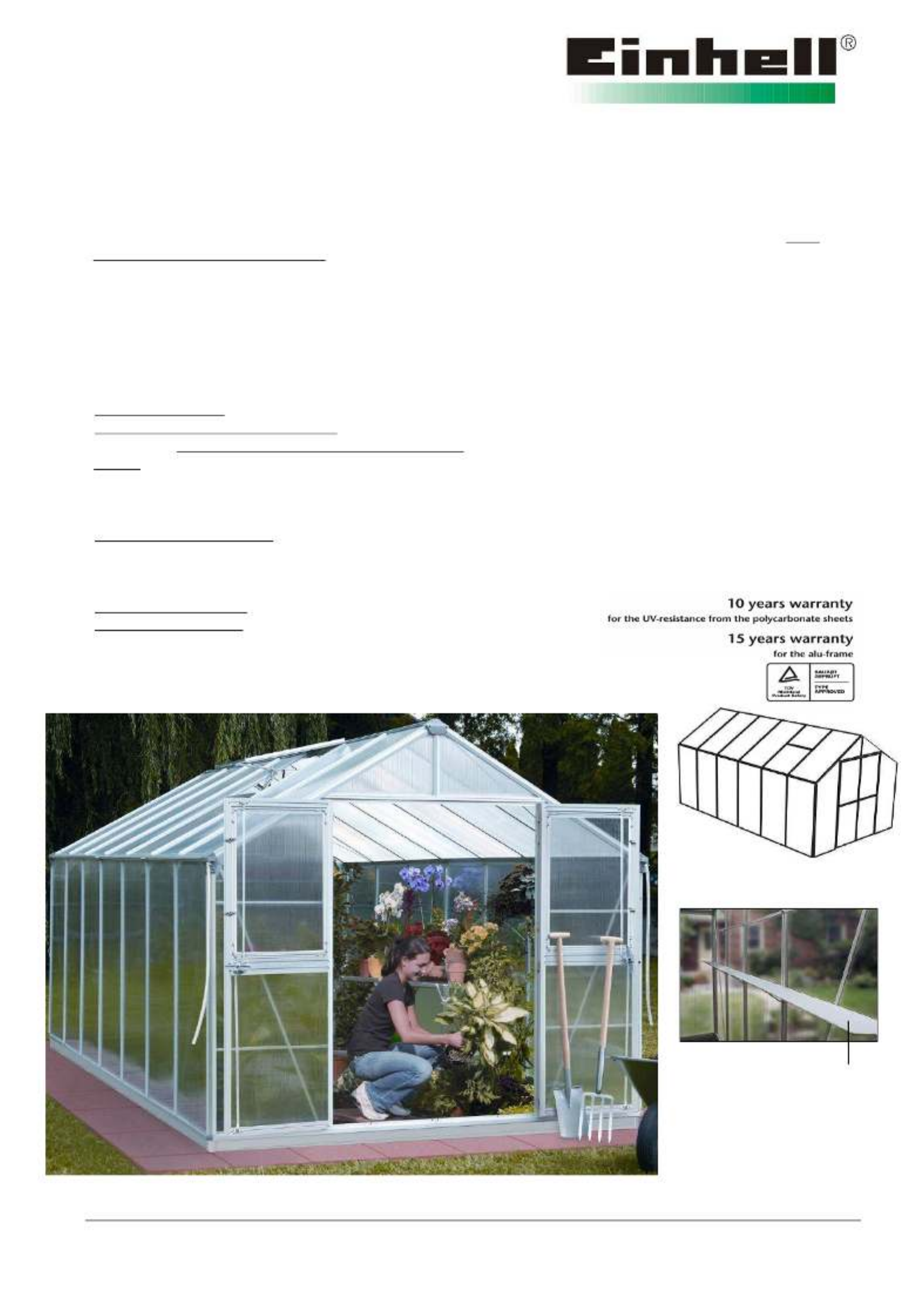 The greenhouse is snow load tested with 50 kg/m² and wind load tested with 25 kg/m².