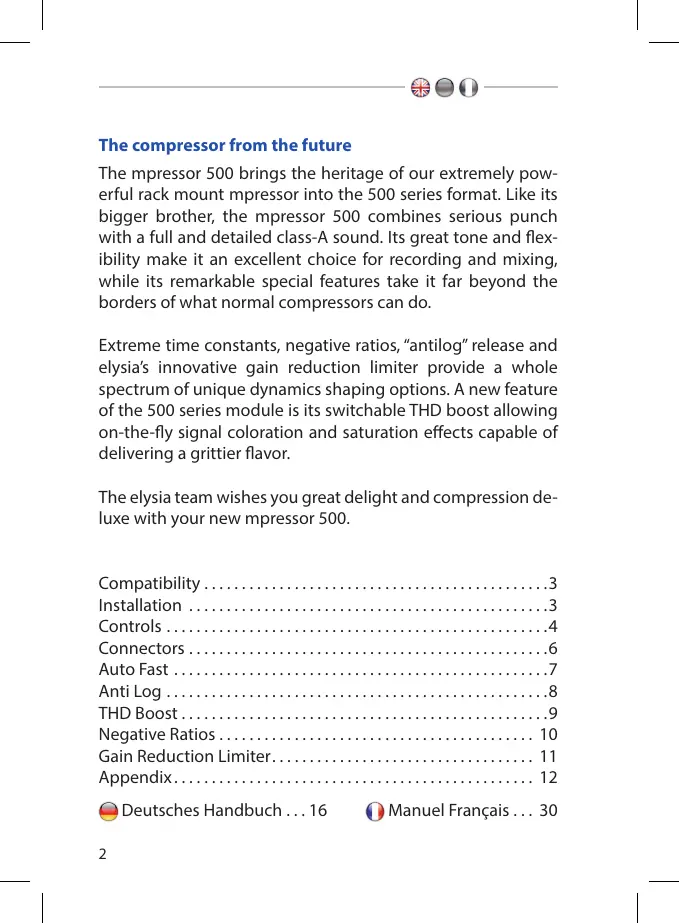 Elysia mpressor 500 Manual