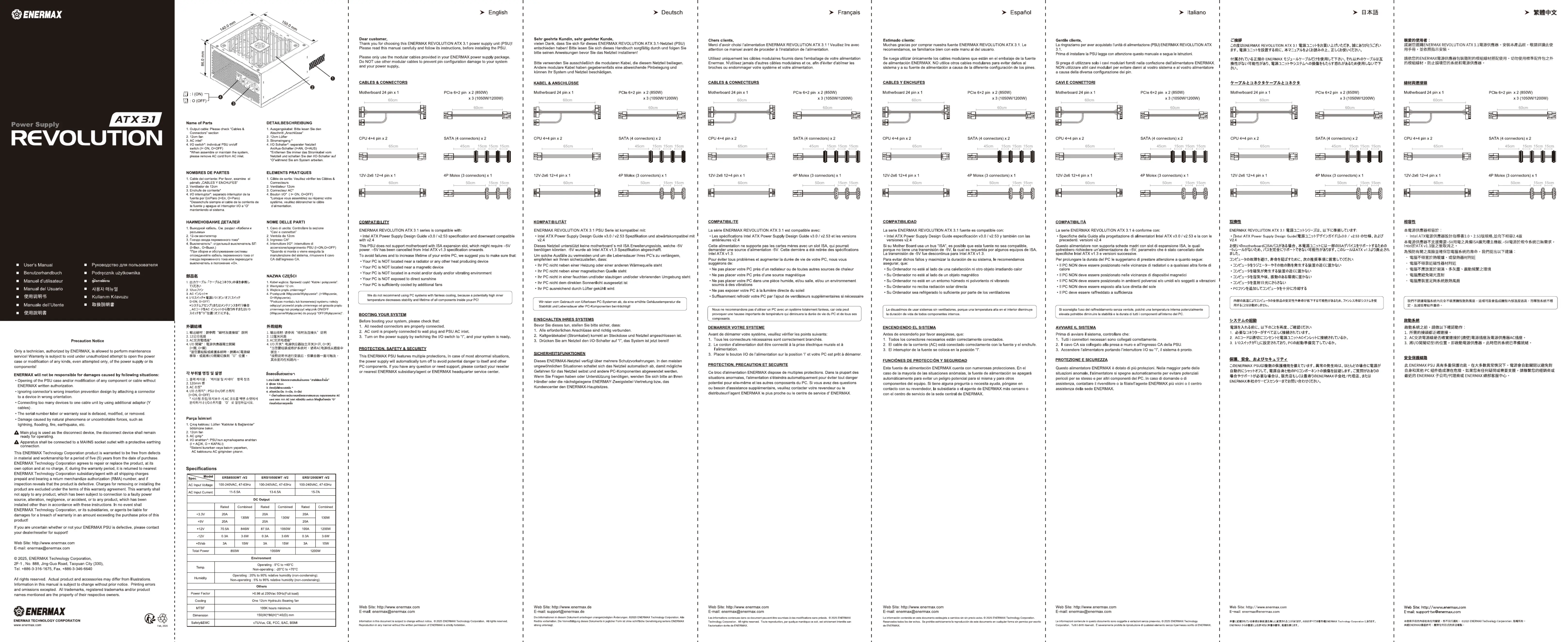 Enermax Revolution 1200W ATX 3.1 Manual