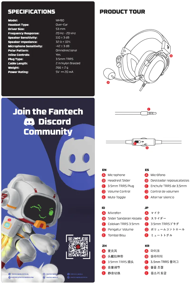 Læs gratis den danske manual til Fantech SONATA MH90 (2 sider) i kategorien Hi-Fi system. Denne vejledning er vurderet som hjælpsom af 25 personer og har en gennemsnitlig bedømmelse på 4.7 stjerner ud af 13 anmeldelser.