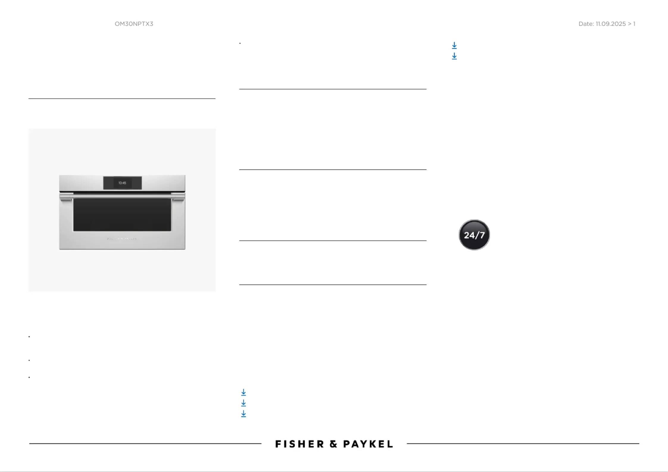 Læs gratis den danske manual til Fisher & Paykel OM30NPTX3 (1 sider) i kategorien Ovn. Denne vejledning er vurderet som hjælpsom af 3 personer og har en gennemsnitlig bedømmelse på 4.7 stjerner ud af 2 anmeldelser.
