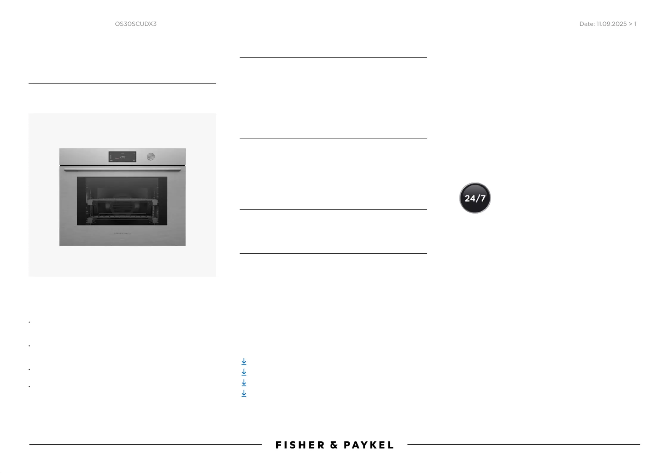 Læs gratis den danske manual til Fisher & Paykel OS30SCUDX3 (1 sider) i kategorien Ovn. Denne vejledning er vurderet som hjælpsom af 3 personer og har en gennemsnitlig bedømmelse på 4.9 stjerner ud af 2 anmeldelser.