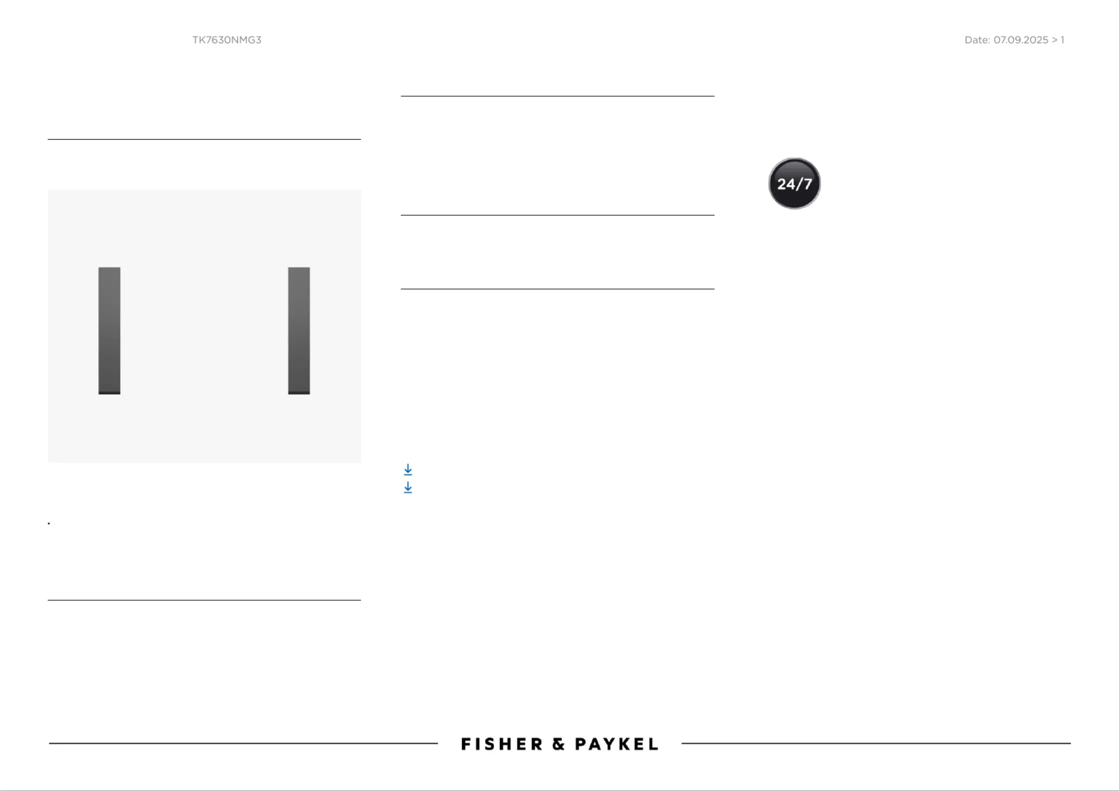 Læs gratis den danske manual til Fisher & Paykel TK7630NMG3 (1 sider) i kategorien Ikke kategoriseret. Denne vejledning er vurderet som hjælpsom af 4 personer og har en gennemsnitlig bedømmelse på 4.8 stjerner ud af 2.5 anmeldelser.