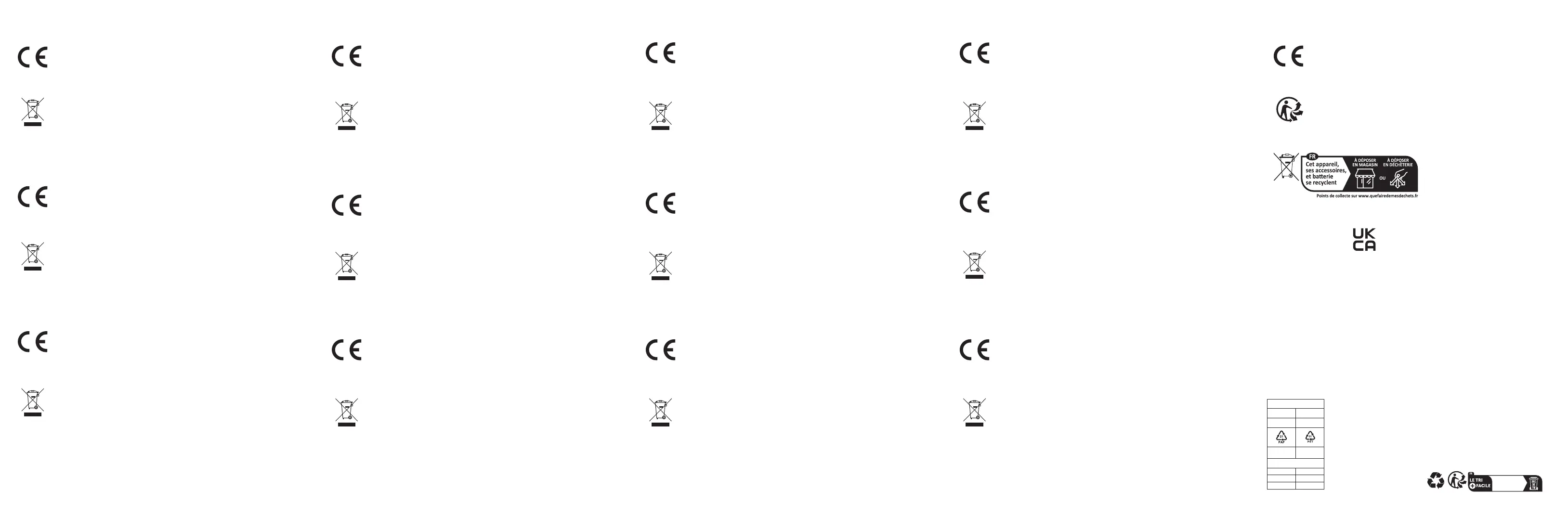 FR - Les matériaux d’emballage ont été sélectionnés pour leur respect de l’environnement et sont recyclables. Éliminer les matériaux d’emballage qui ne sont plus nécessaires conformément aux réglementations locales