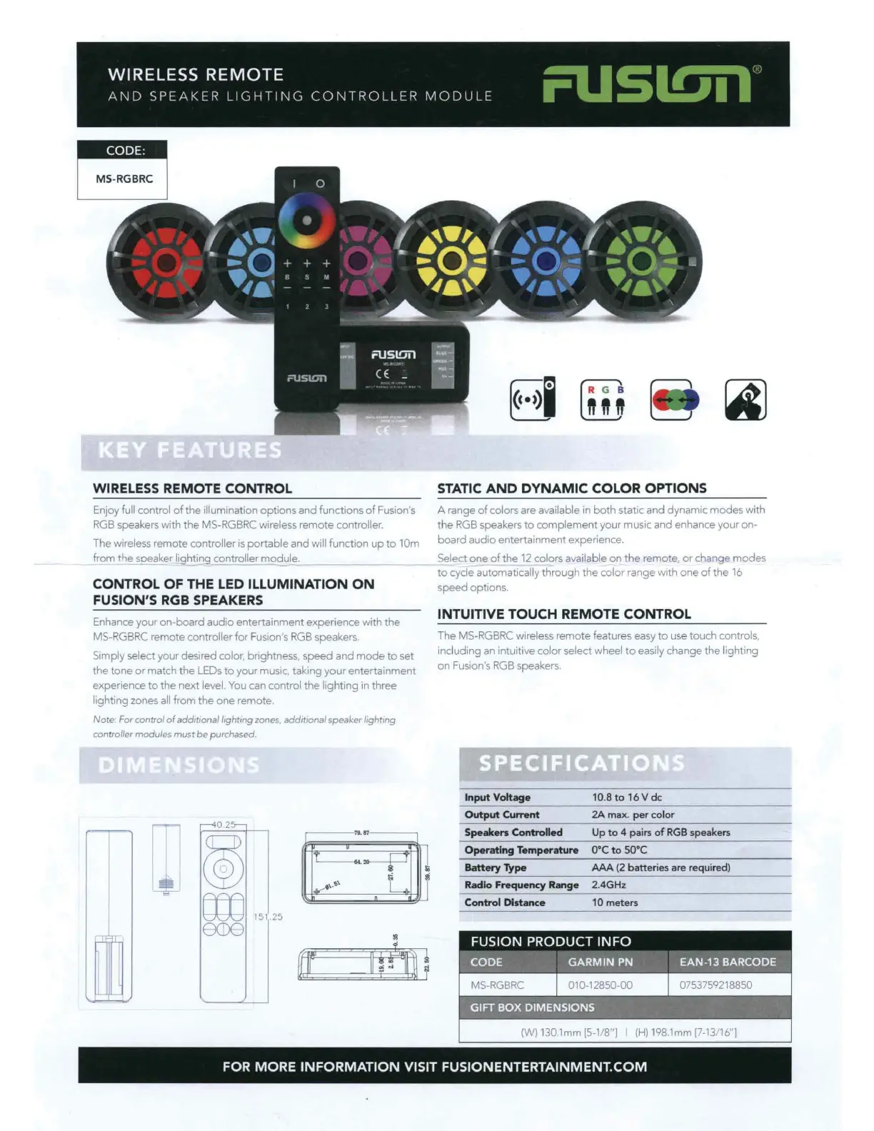 The MS-RGBRC wireless remote features easy