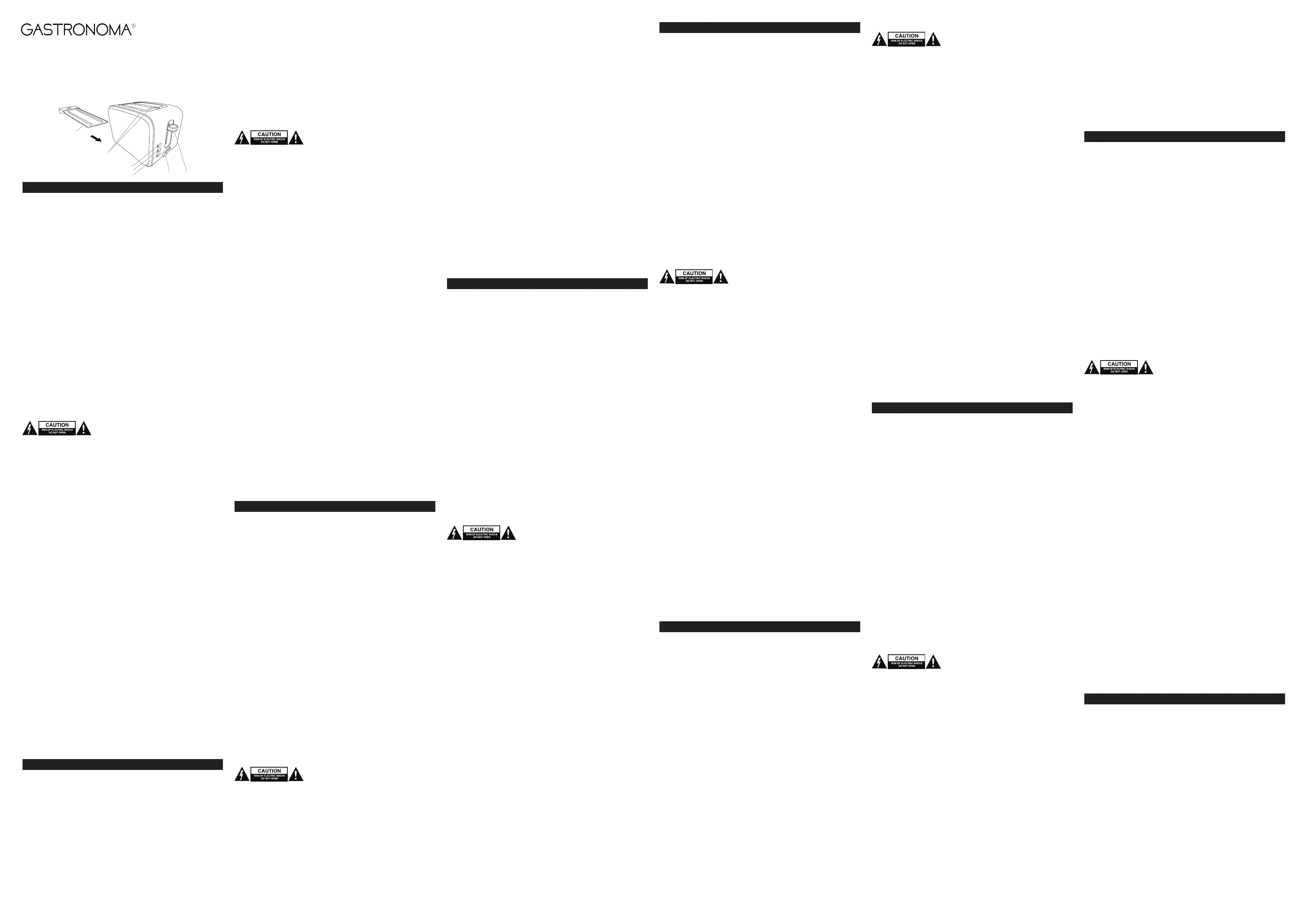 • Do not use the device without the crumb tray. Do not allow breadcrumbs to accumulate in the bottom of the device.