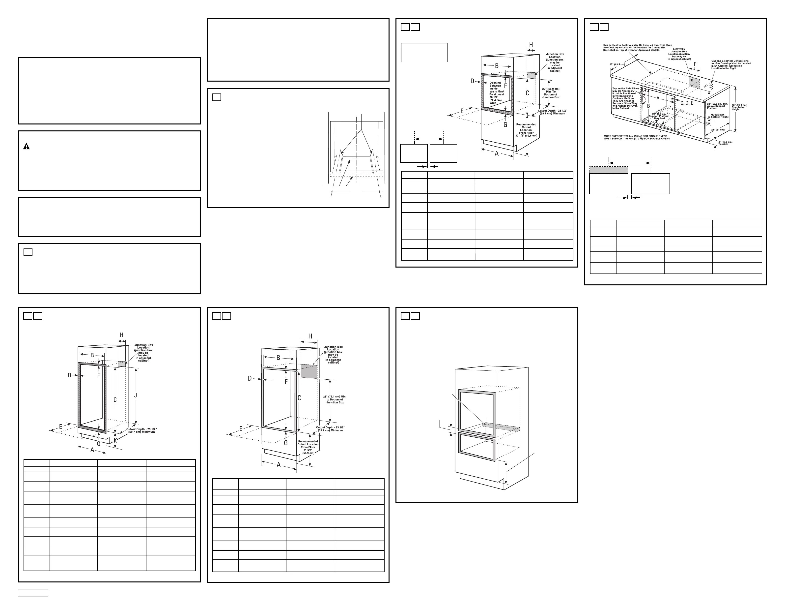 A double oven may be installed in a cabinet alone or above a warming drawer. See the label on top of