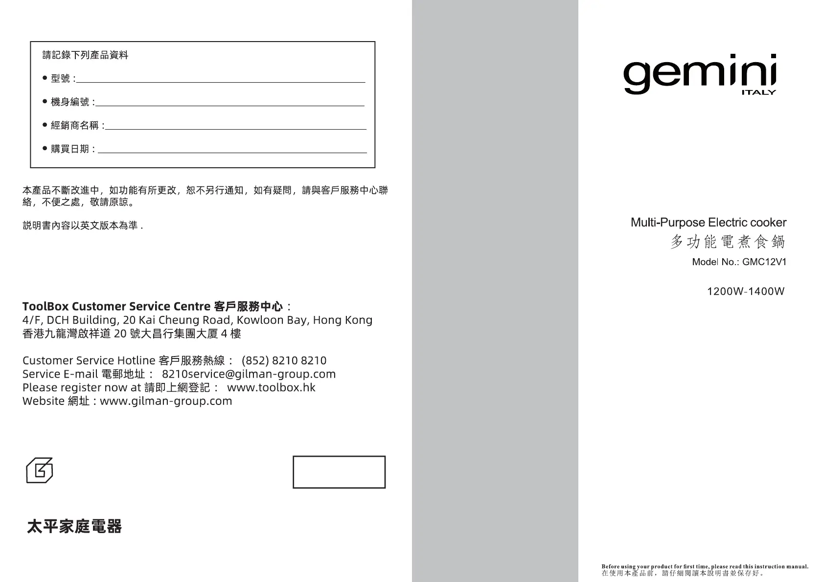Læs gratis den danske manual til Gemini GMC12V1 (7 sider) i kategorien Multi komfur. Denne vejledning er vurderet som hjælpsom af 38 personer og har en gennemsnitlig bedømmelse på 4.3 stjerner ud af 19.5 anmeldelser.