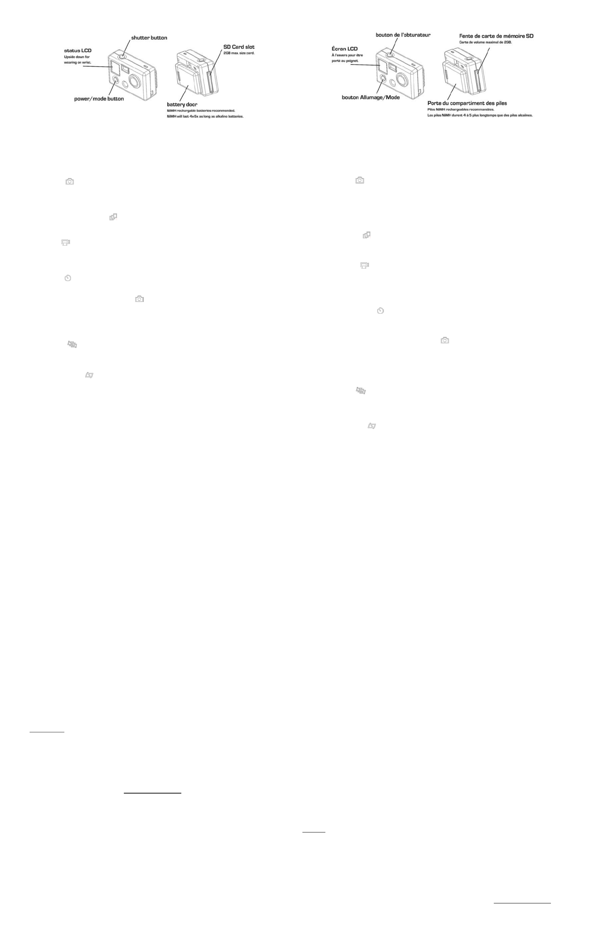 Appuyez sur le bouton ALLUMAGE / MODE jusqu’à ce que l’icône passe par triple vue, vidéo, minuterie et affiche une nouvelle fois
