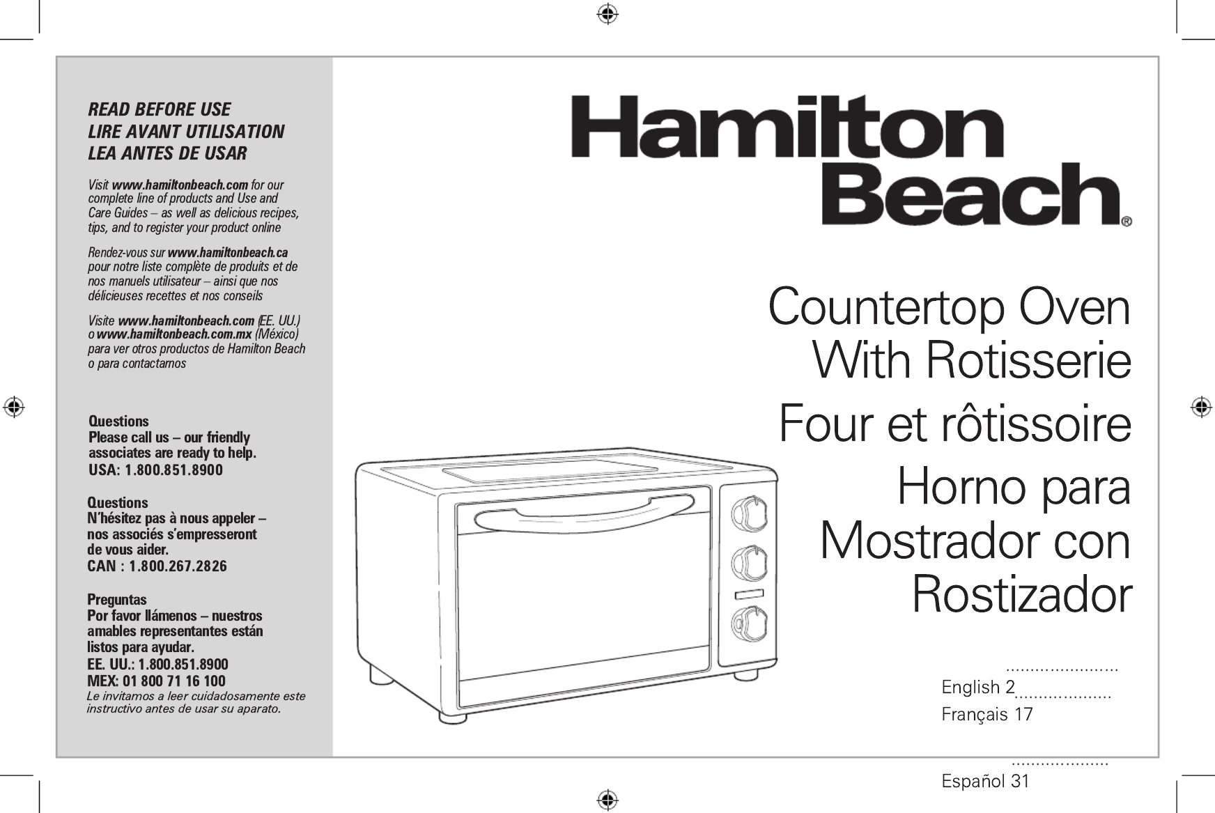Ovn Hamilton Beach Manualer