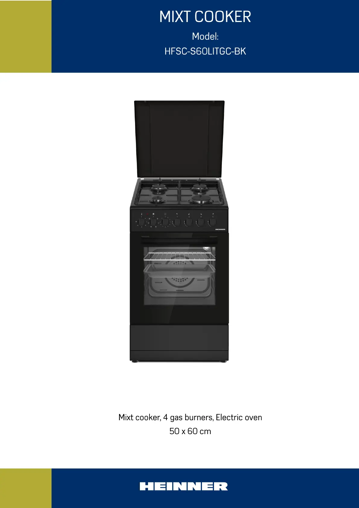 Læs gratis den danske manual til Heinner HFSC-S60LITGC-BK (126 sider) i kategorien Komfur. Denne vejledning er vurderet som hjælpsom af 7 personer og har en gennemsnitlig bedømmelse på 5.0 stjerner ud af 4 anmeldelser.