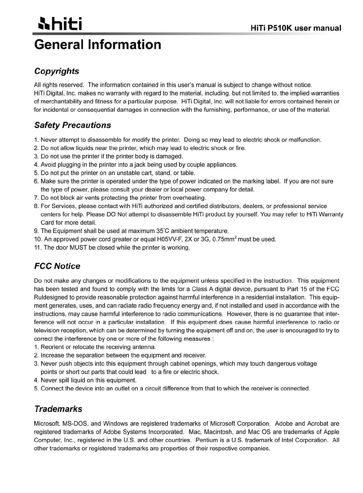 HiTi P510k Manual