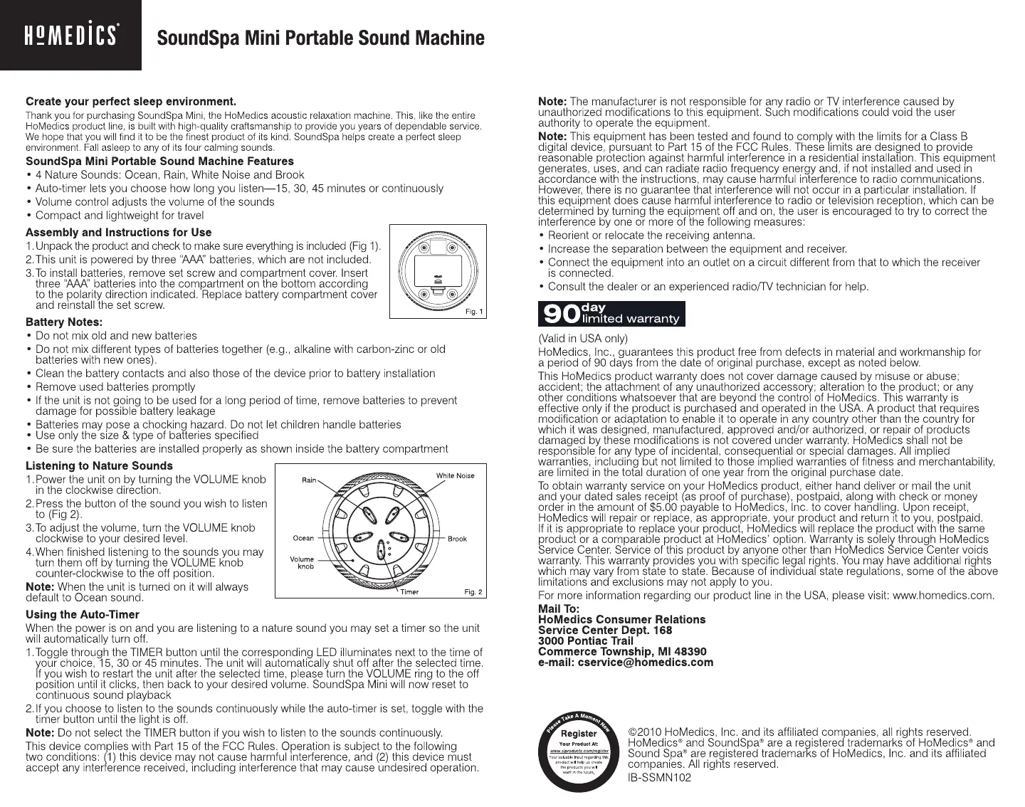 Homedics Sound Spa Mini SS-MN102 Manual