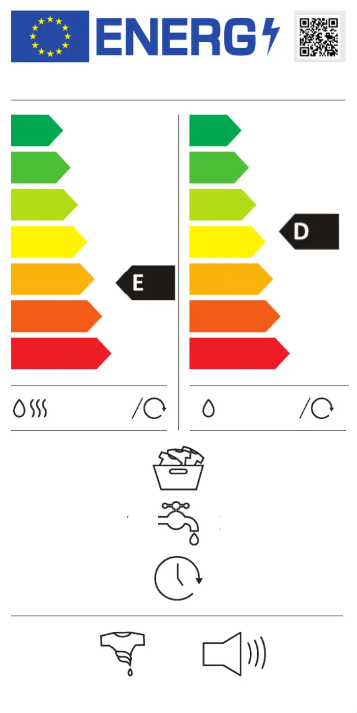 | Energieffektivitetsklasse (vask og tørring): | E |