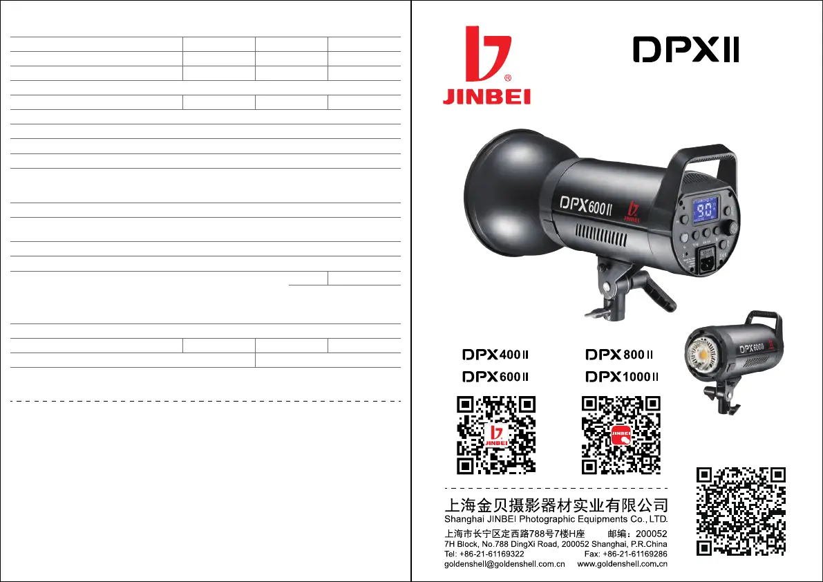 型号 Type DPX-400II DPX-800IIDPX-600II