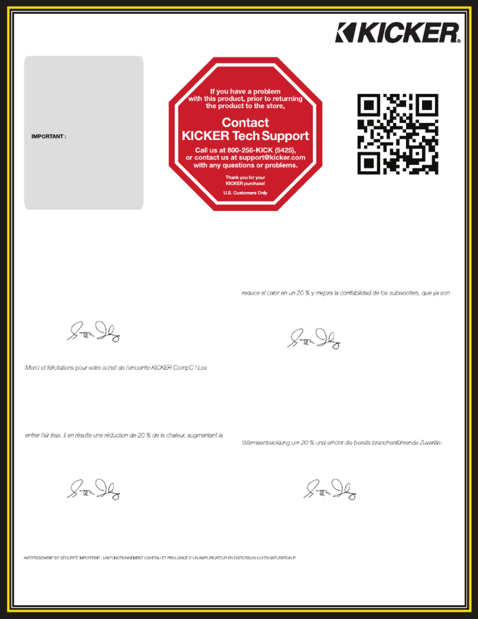 Thank y aou nd c r song atulation on r you purchase of the KICKER CompC