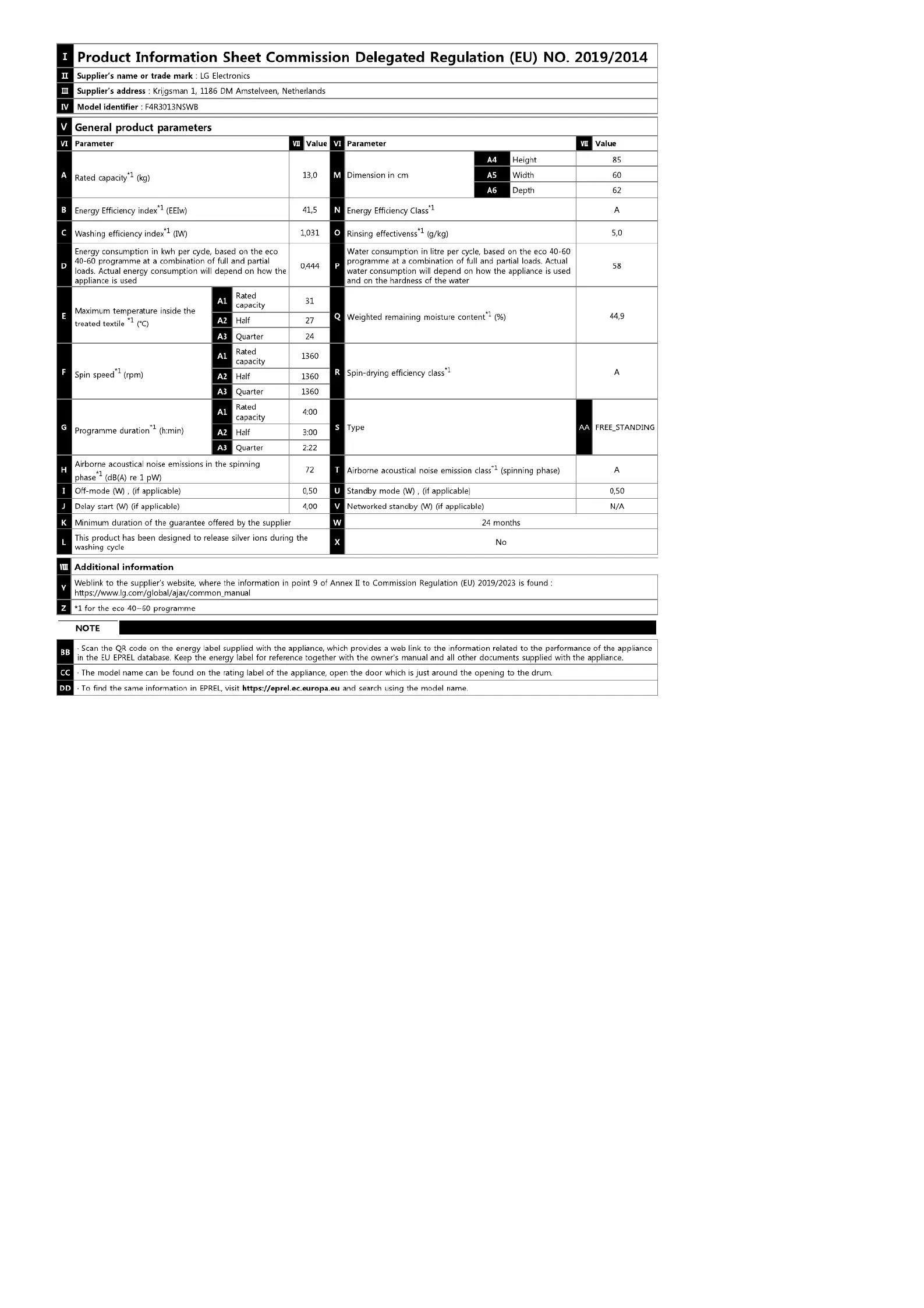 | Model: | F4R3013NSWB |