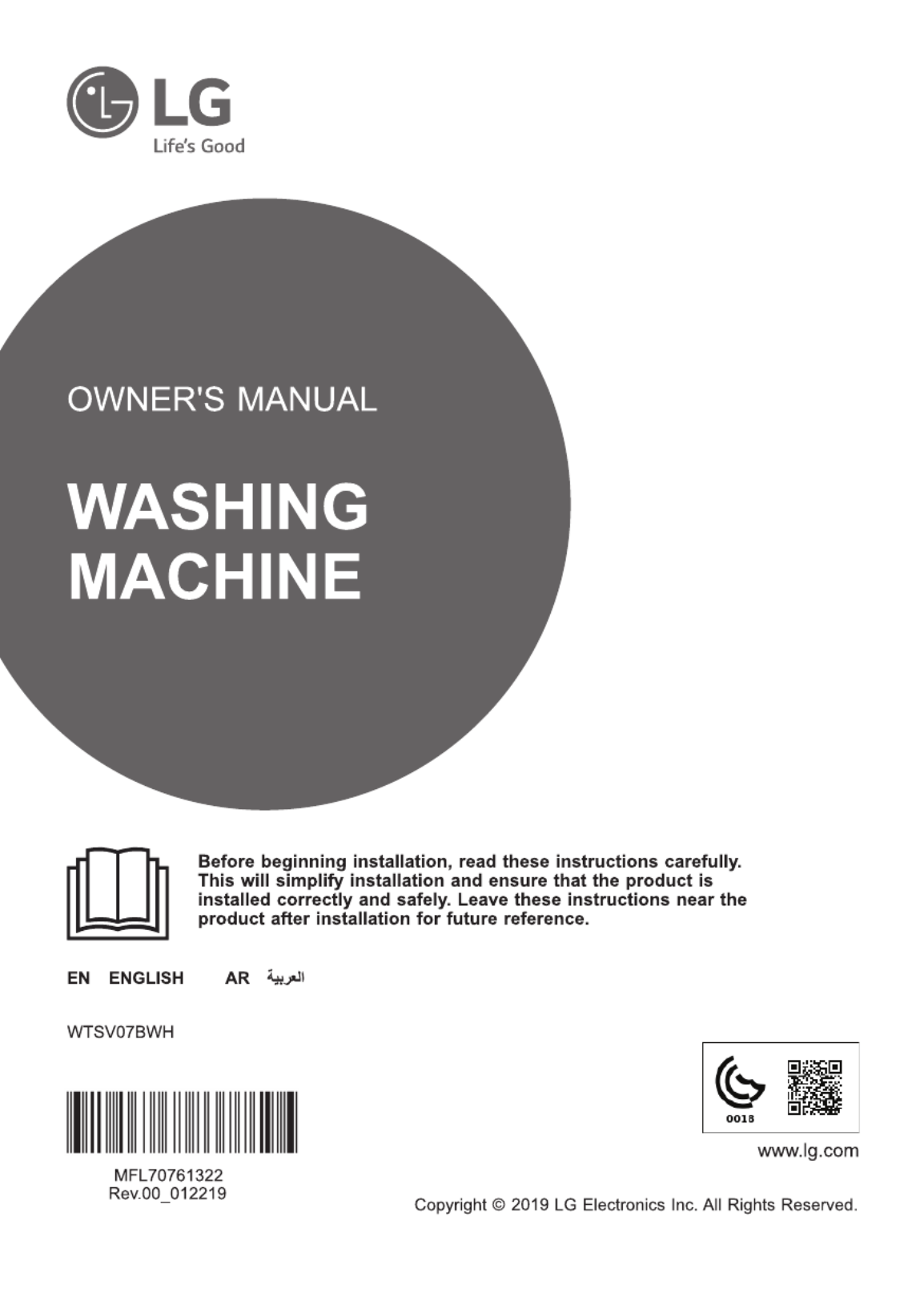 Læs gratis den danske manual til LG WTSV07BWH (87 sider) i kategorien Vaskemaskine. Denne vejledning er vurderet som hjælpsom af 68 personer og har en gennemsnitlig bedømmelse på 4.8 stjerner ud af 34.5 anmeldelser.