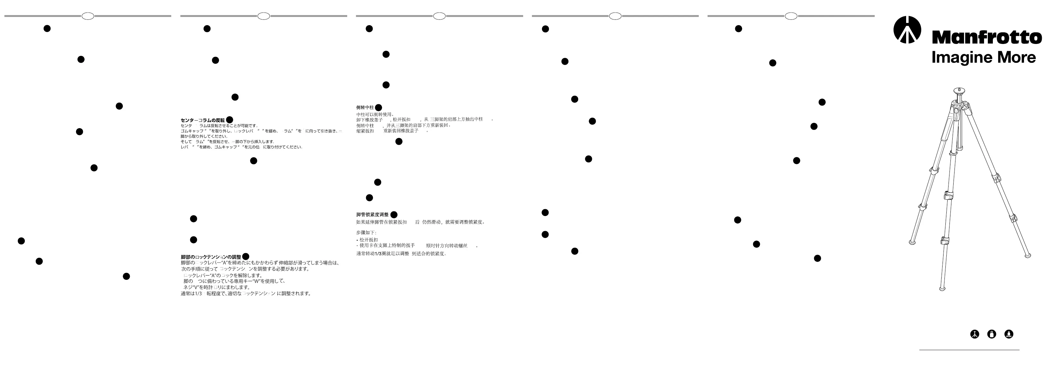 每根支腿可单独设置4个不同的展开角度。 若需改变支腿的角度,轻轻朝中柱方向收拢支