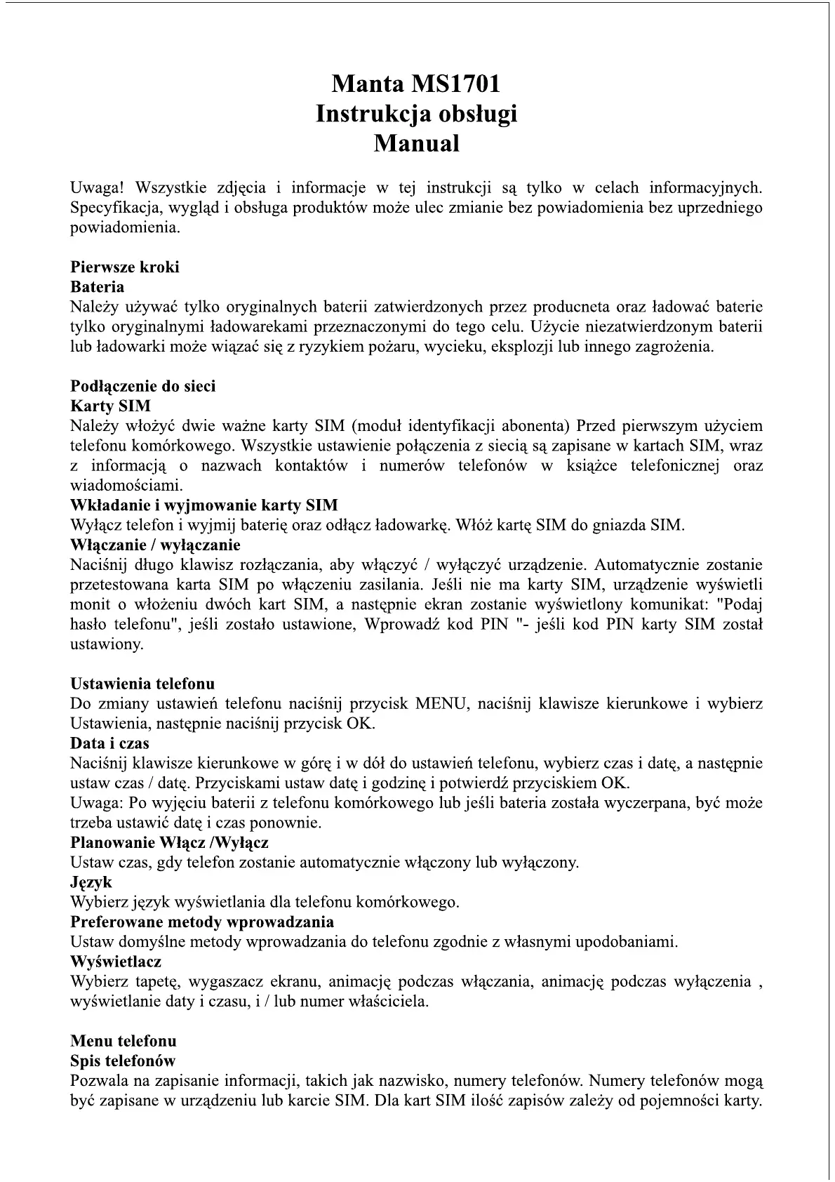 Manta Vintage MS1701 Manual