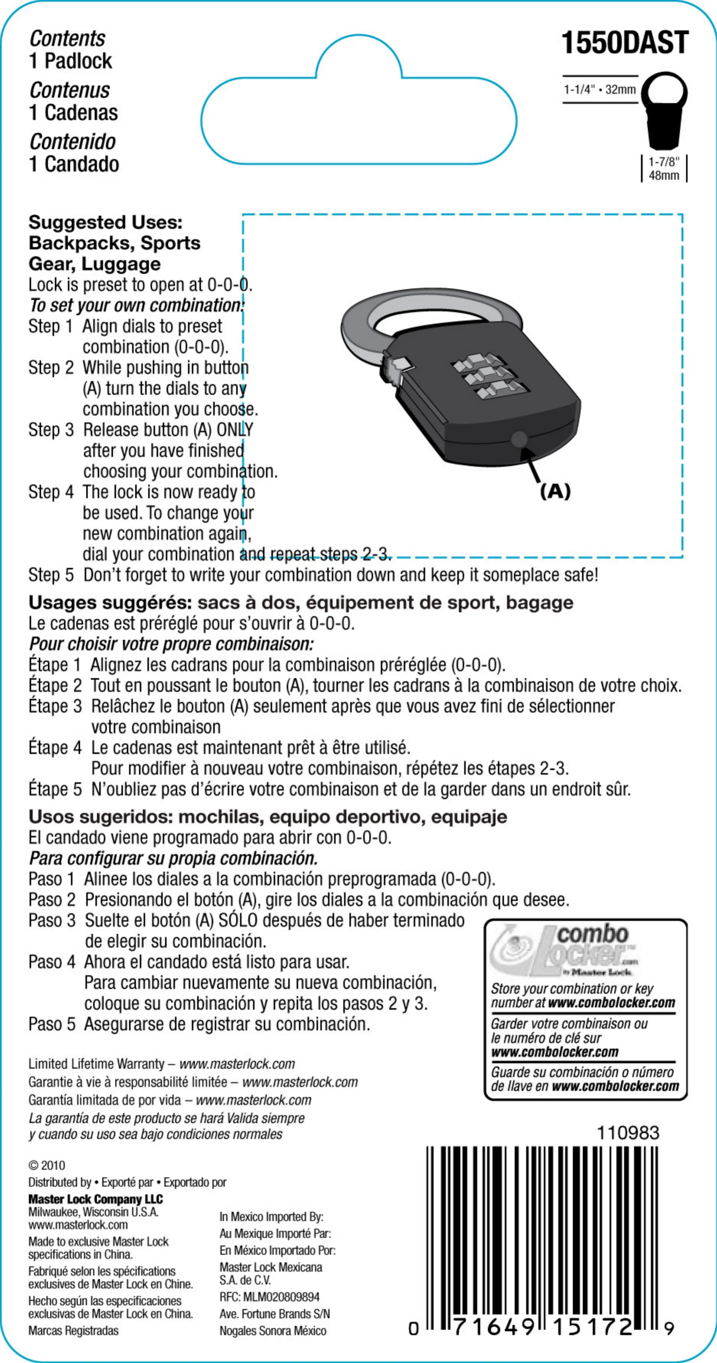 Master Lock 1550DAST Manual