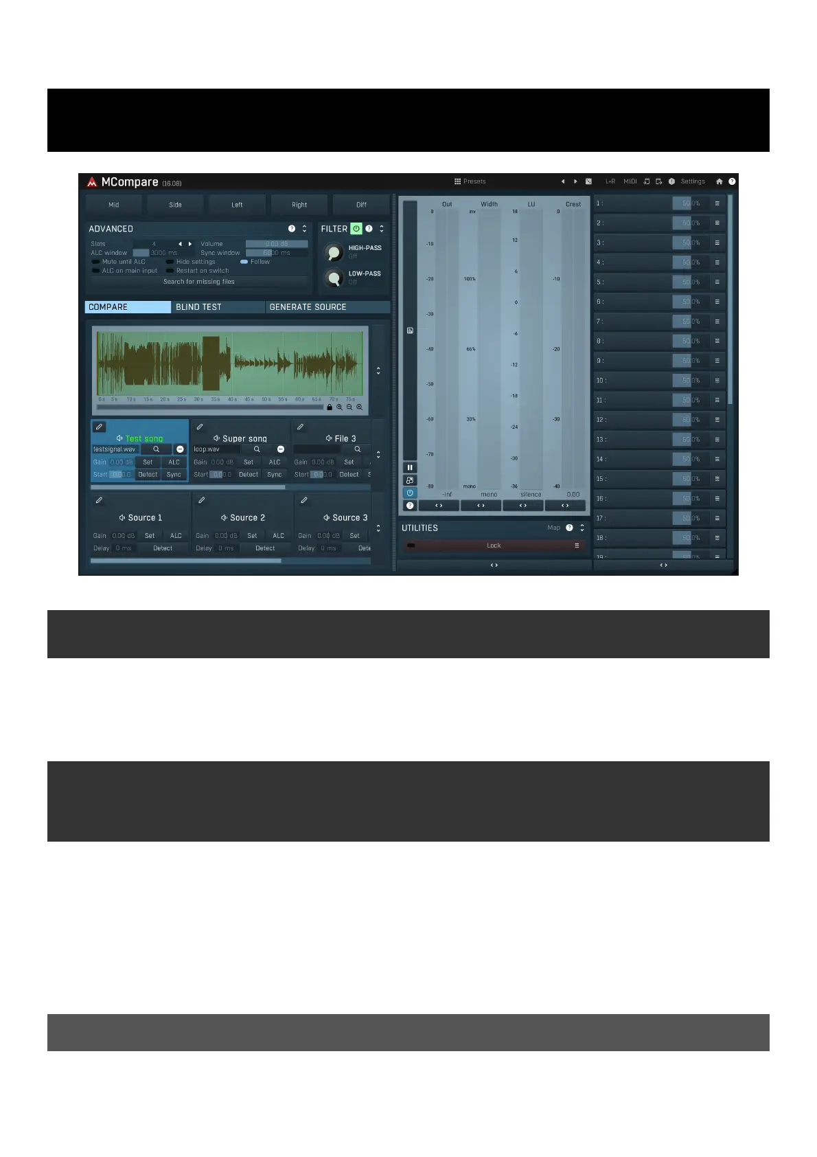 compensation, and extensive metering. Comparing your audio to finished recordings and to different stages of the processing is an essential