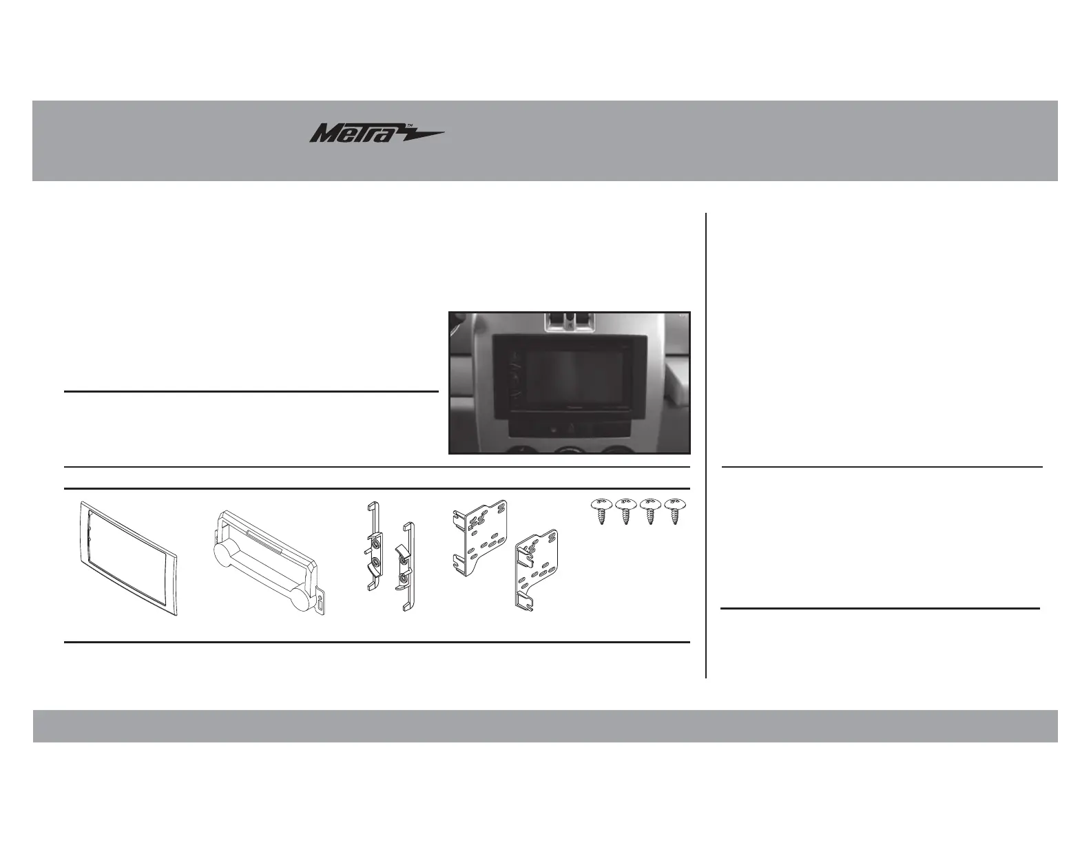 Læs gratis den danske manual til Metra 95-6533B (4 sider) i kategorien Ikke kategoriseret. Denne vejledning er vurderet som hjælpsom af 13 personer og har en gennemsnitlig bedømmelse på 5.0 stjerner ud af 7 anmeldelser.